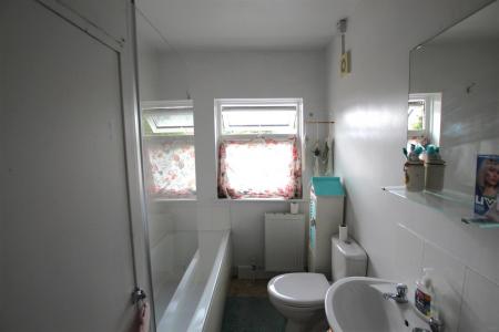 Bathroom - 4.14m x 1.68m (13'07 x 5'06) - Fitted with a three piece suite comprising bath with shower over, pedestal basin and wc. The bathroom also benefits from an extractor fan, radiator and uPVC double glazed window to the rear aspect.