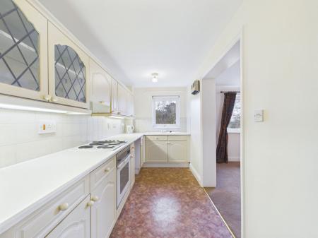 KITCHEN - 4.3 m x 1.8 m at widest Fitted with a range of cream wall and base units with work surface over. 1 1/2 bowl composite single drainer sink unit. Plumbing for washing machine. Integrated Zanussi electric hob with matching oven/grill below and concealed cooker hood over. Space for upright fridge freezer. Electric wall heater. Double glazed window enjoying an outlook over Cary Park. Tiled walls. Under cabinet lighting.