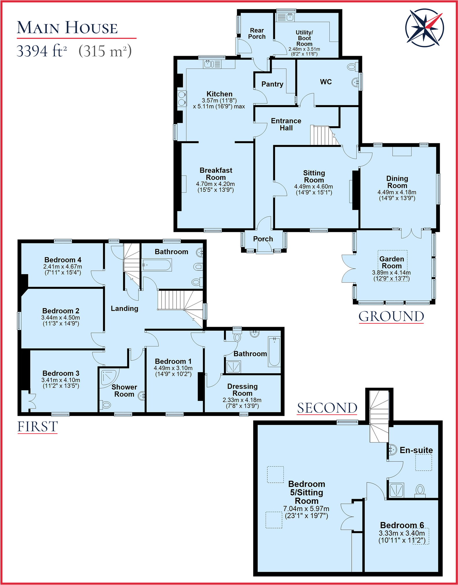 - Principal bedroom suite with dressing room and en-suite; second-floor teenage or guest retreat