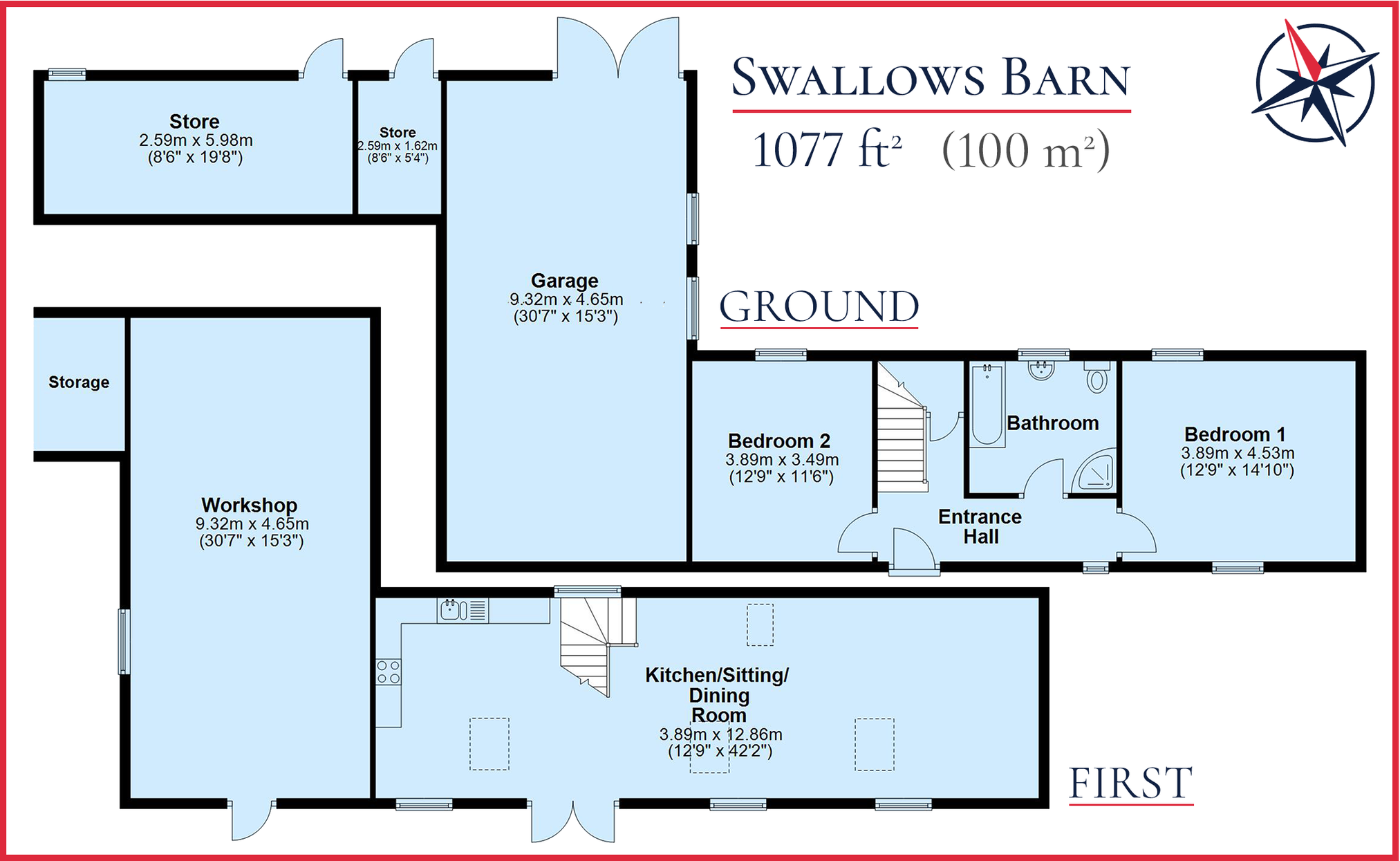 - Swallows Barn with modern open-plan living; adjoining workshop with potential to extend