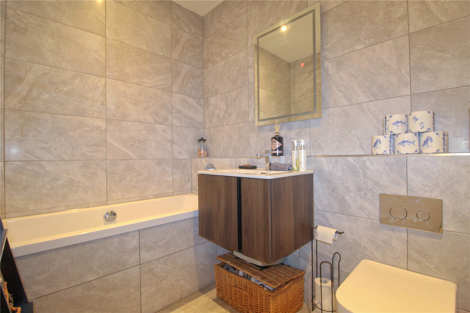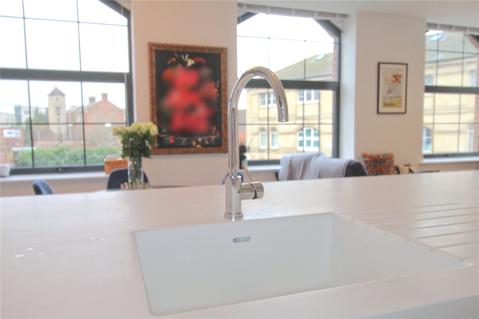 Accessed via a video entry system, the communal hall has the ambiance of a boutique hotel with both stairs and a lift to all floors. Stepping into the apartment you find a hallway with doors to each of the key rooms as well as a large storage cupboard. The impressive dual aspect living space is flooded with natural light and boasts a fabulous kitchen with breakfast bar and plenty of room for lounge furniture as well as a dining table and chairs. The solid Porcelanosa Kiron work surface continues to a moulded sink whilst integrated appliances include oven, induction hob, fridge-freezer, dishwasher, washing machine and wine fridge. The main bedroom is a beautiful dual aspect room with an en-suite consisting of a double shower, WC and wash basin. Bedroom two is another double bedroom whilst the bathroom features a centre tap bath with handheld shower head, WC and wash basin.