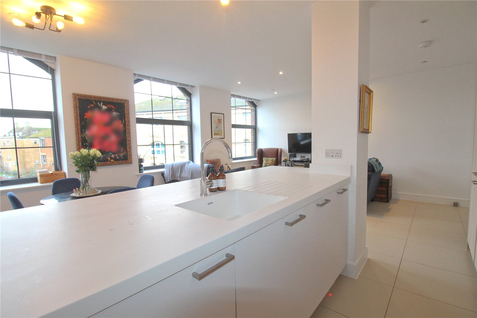 Found on the second floor of a spectacular gated development in the heart of the town, this dual aspect apartment features lift access and stunning large windows. The property boasts superb specification, generous open plan living space and two double bedrooms with master en-suite. NO ONWARD CHAIN
