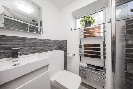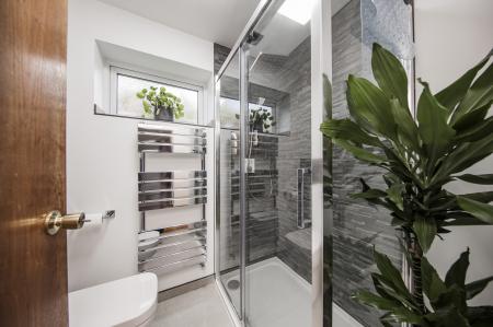 Also on the ground floor, the recently refitted shower room is a standout feature, offering a modern, spa-like experience with a sleek walk-in shower, waterfall head, contemporary basin, and WC. The thoughtful design and quality finish make this space both stylish and practical.