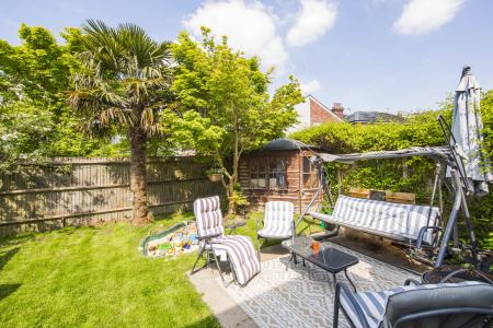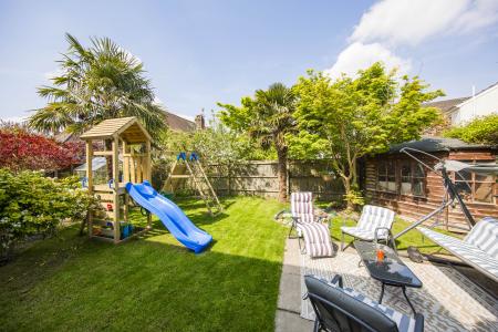 OUTSIDE REAR: Mainly laid to lawn, patio, Summerhouse, integrated sand pit, greenhouse. Outside tap, side access. Flower beds and border with mature trees and shrubs.