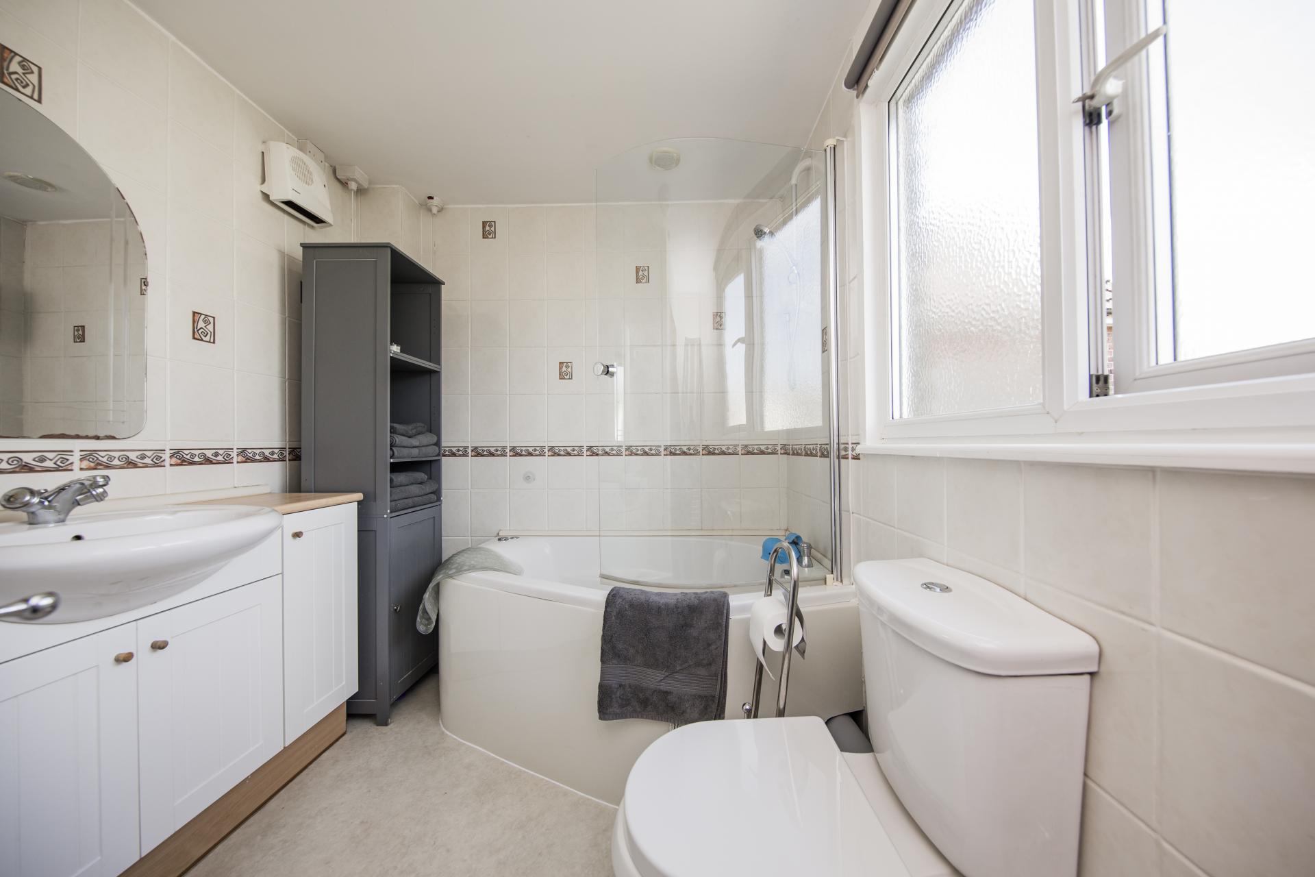 Upstairs, the home continues to impress with three well-proportioned double bedrooms, each offering generous proportions and excellent storage solutions, including access to useful eaves space. The bedrooms are served by a large family bathroom which provides further potential for modernisation but is already well-sized to accommodate the needs of a busy household.