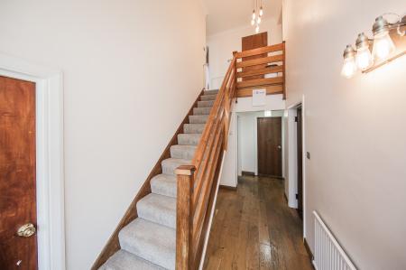 ENTRANCE HALL: Stairs to first floor, original wooden flooring, radiator, large space understairs for coats/shoes.