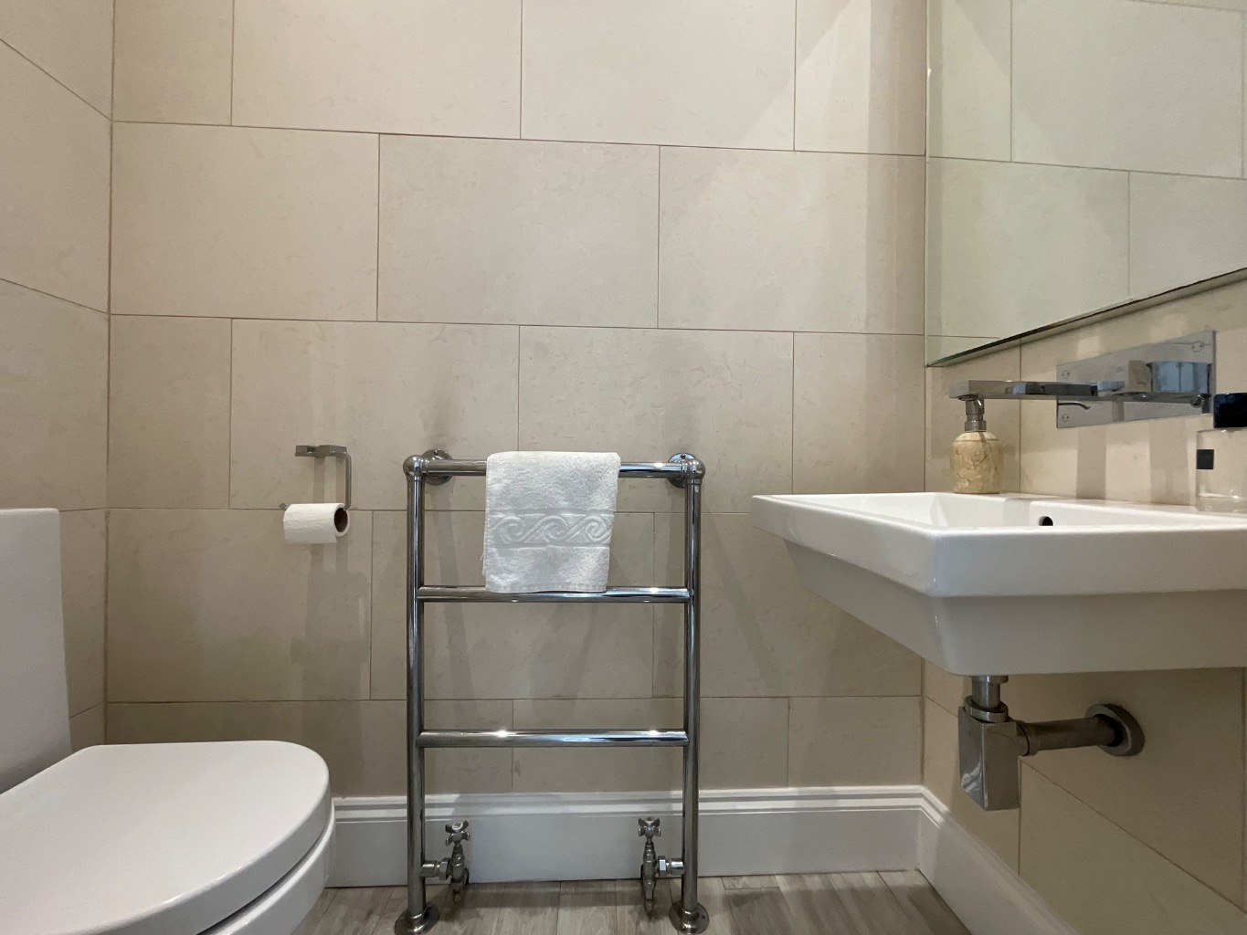 WC (1.75 x 0.83)Features: coving to ceiling, low level WC, pedestal hand wash basin, heated towel rail, Amtico flooring.