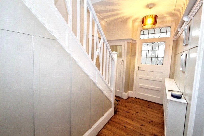 Hallway With stripped floorboards, doors lead to the cloakroom/WC, dining room at the front, lounge and snug to the rear, staircase to the first floor, panelling to the walls and radiator.