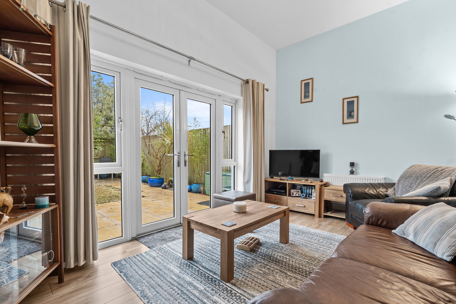 2 radiators. Double glazed French doors with matching side panels overlooking the very pleasant enclosed rear garden.