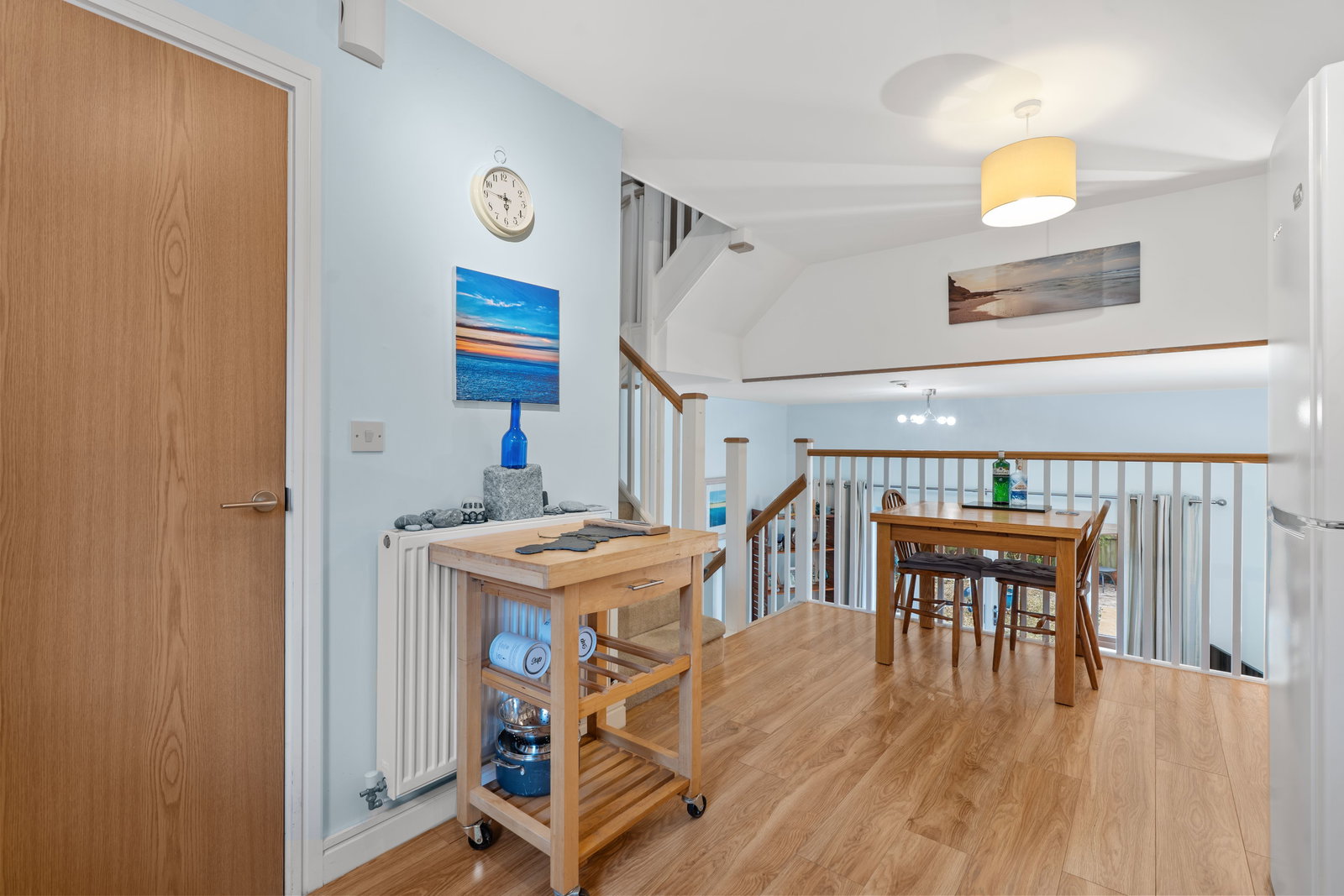 Stairs leading off to half landing.