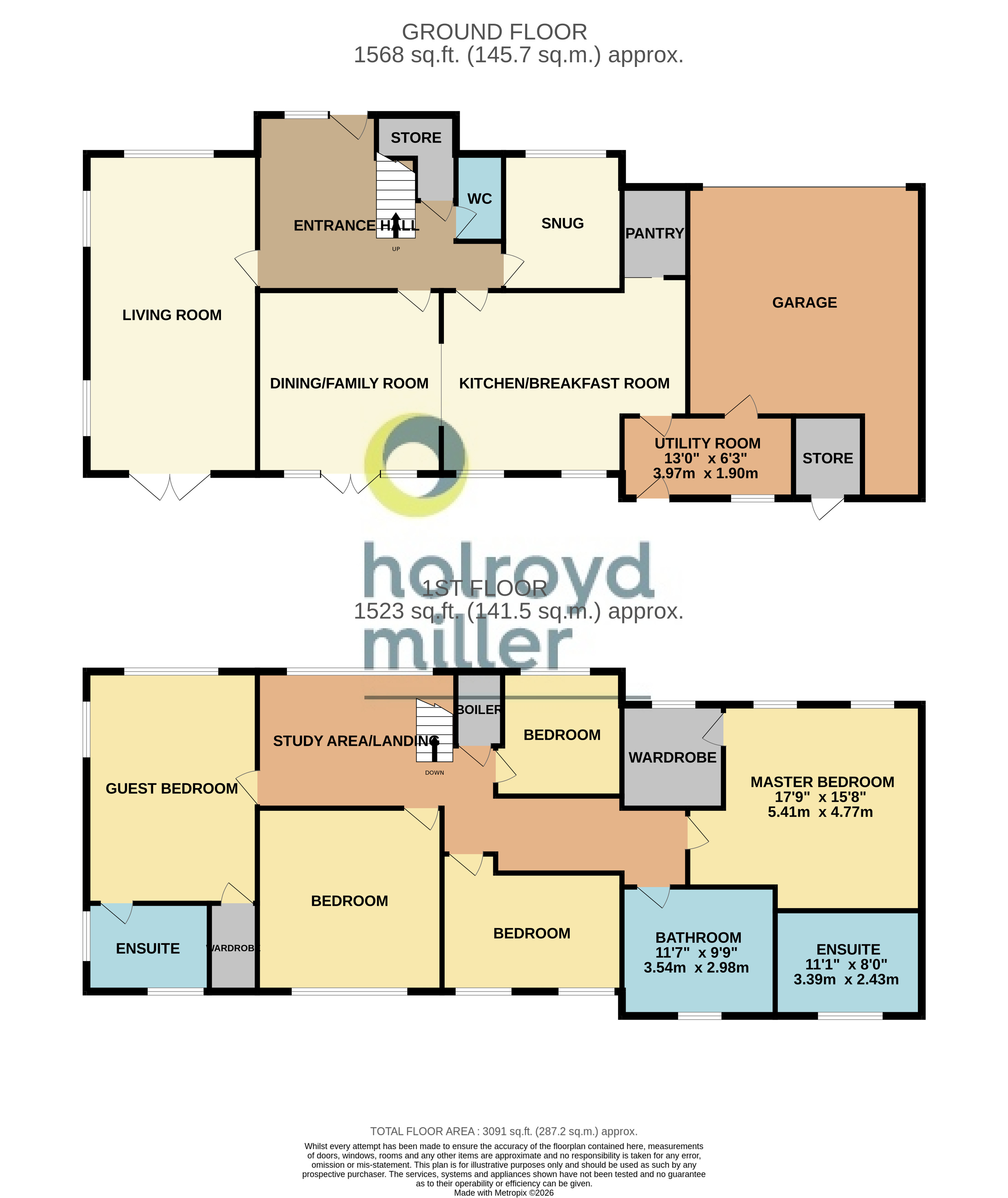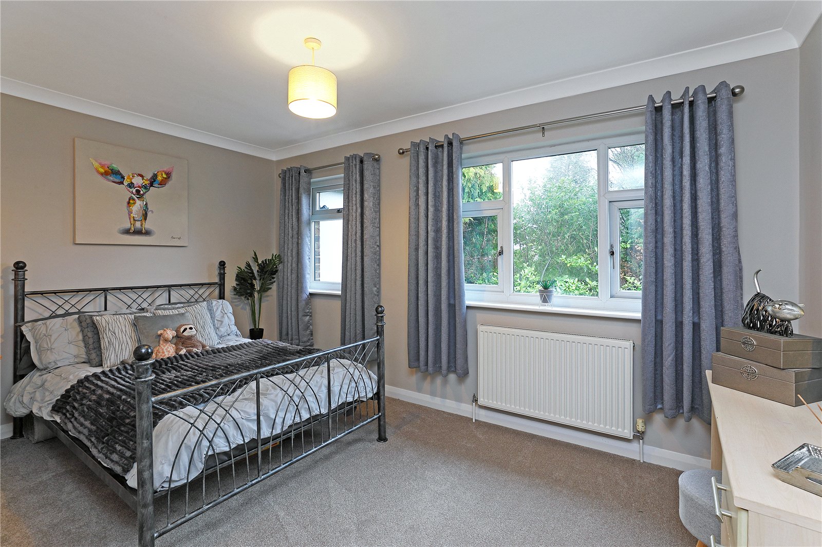 Guest Bedroom 17'2" x 12'11" (5.23m x 3.94m). An impressive guest bedroom with dual aspect double glazed windows, walk-in wardrobe providing excellent hanging space, central heating radiator.