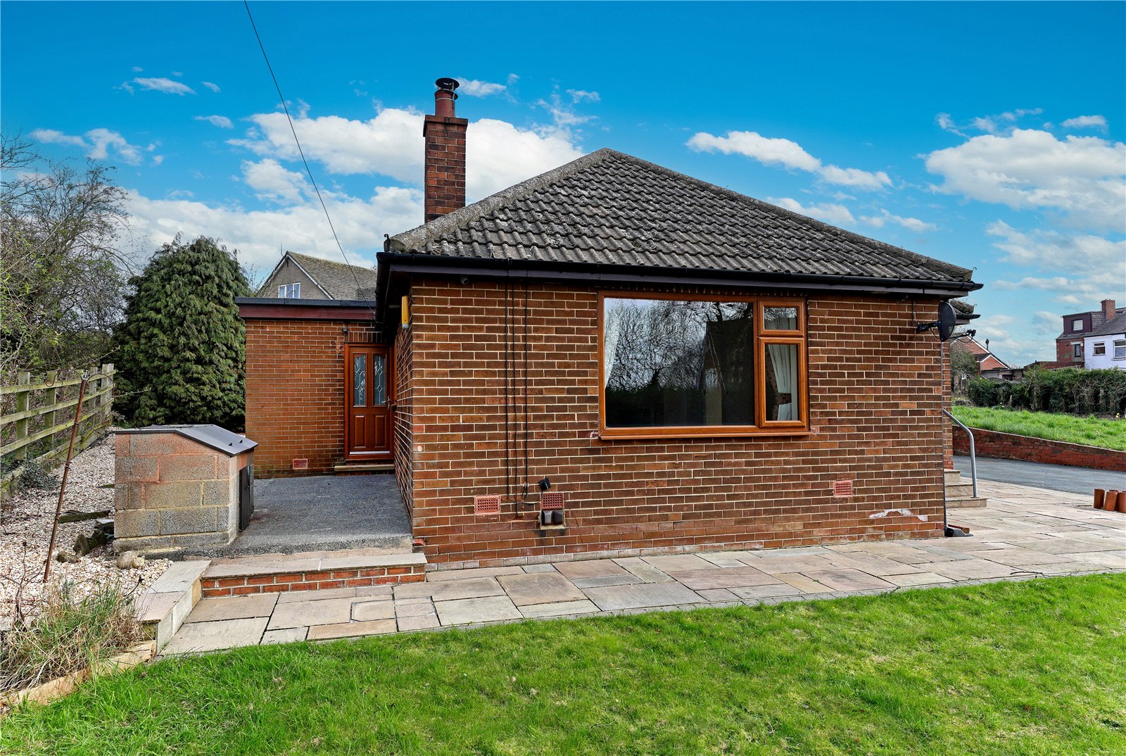 Holroyd Miller have pleasure in offering for sale this individually designed detached true bungalow occupying an enviable back water position with open views to the rear and offering tremendous potential. Located on the edge of East Ardsley village, yet minutes' drive from the M1/M62 motorway network. Offered with No Chain. Recently redecorated and offering well planned accommodation and briefly comprising PVCU double glazing, Economy 7 electric heating and comprising outer entrance porch leading to reception hallway with built in storage, spacious living room with feature open staircase, feature fireplace with log burner with open views, access to first floor attic space, offering excellent potential, ground floor combined wet room/bathroom, extended kitchen/diner with a range of high gloss white units, three good sized bedrooms. Outside, generous mainly laid to lawn gardens to the side with Indian stone paved pathway, driveway providing ample off street parking and leading to large tandem style detached garage. Located off Stoney Lane within minutes' drive from the M1/M62 motorway network, local schools and amenities. Offered with No Chain, Viewing Essential.