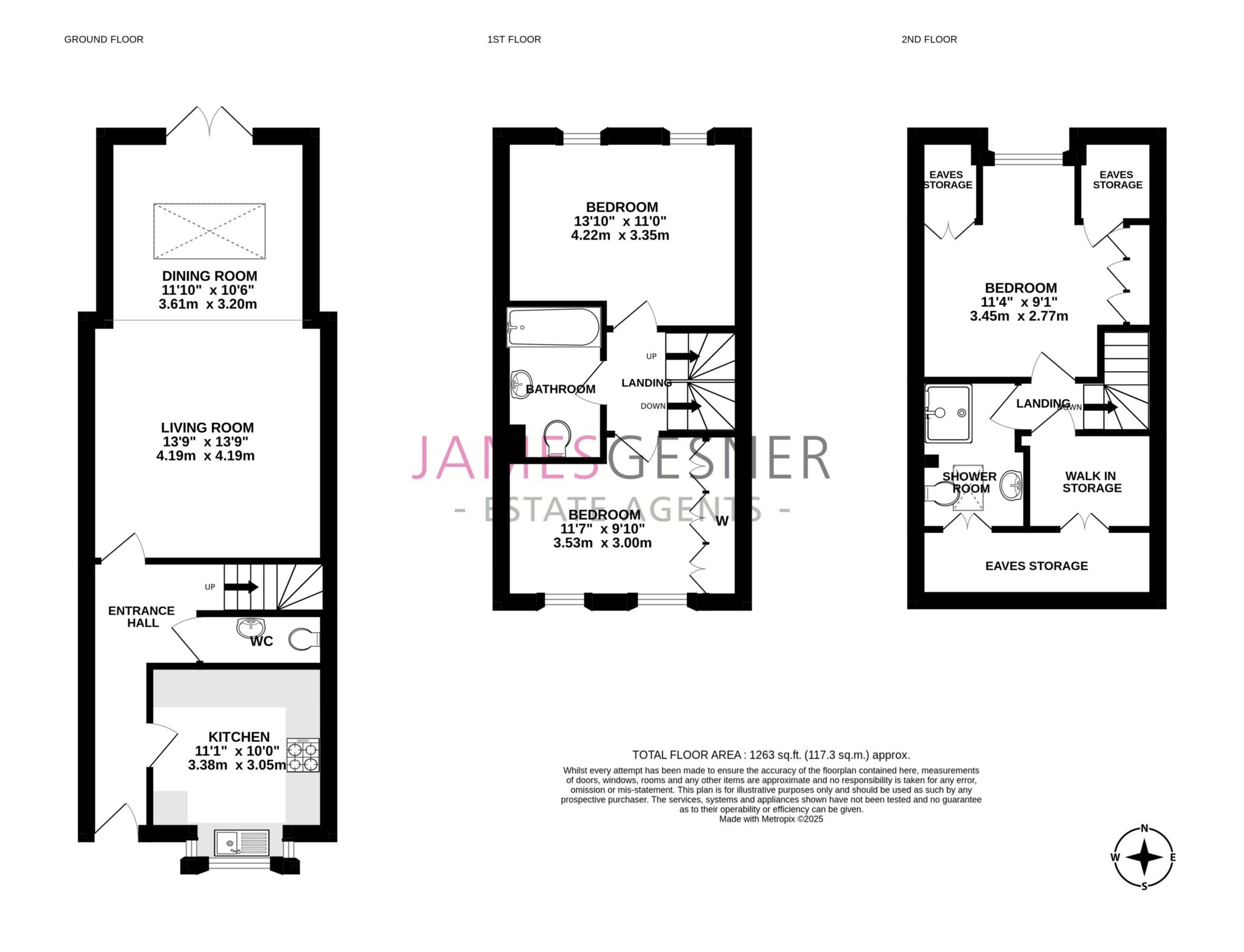 The ground floor accommodation comprises; entrance hallway, cloakroom, open plan lounge dining room with under floor heating and a re-fitted fully integrated kitchen. On the first floor you will find two double bedrooms and a stylish bathroom. The top floor has a further double bedroom, a shower room, and a walk in storage cupboard. Two of the bedrooms have fitted wardrobes as well as eaves storage. Further features include engineered laminate oak flooring throughout most of the ground floor and tiled flooring to the bathrooms and kitchen.