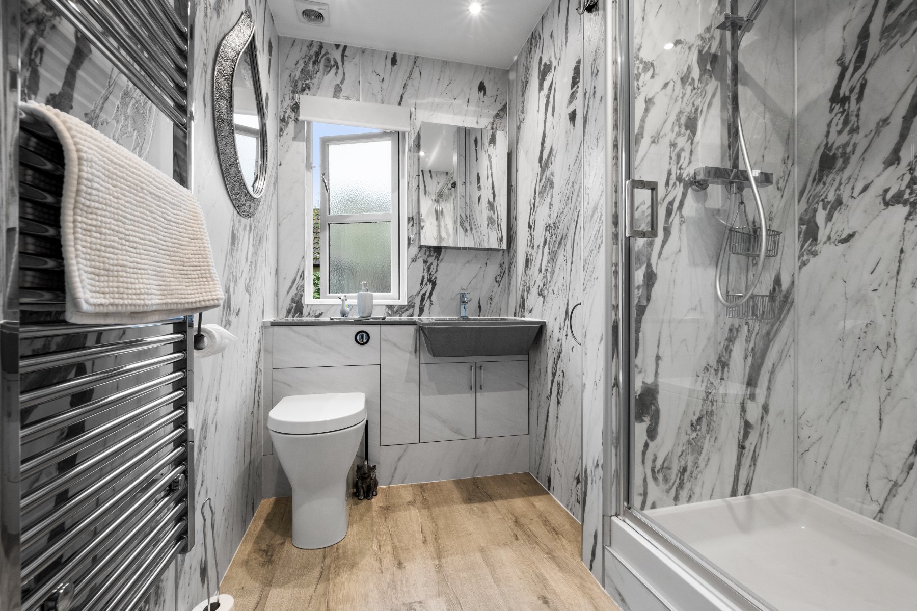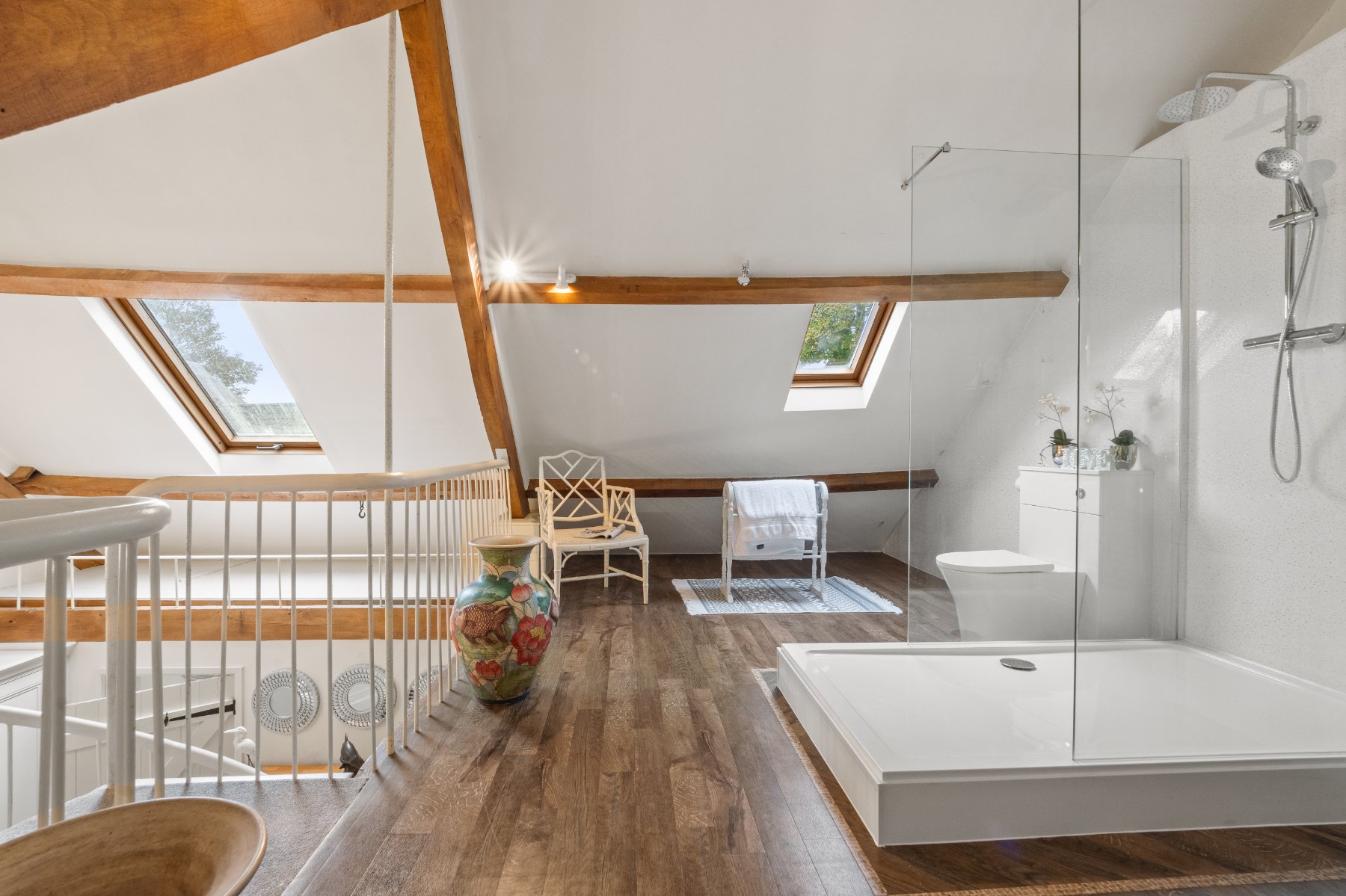 The PRINCIPAL BEDROOM SUITE is stunning, with light coming in from Velux windows and character coming from the unusual style. The room is generous in size and has plenty of storage built in. The statement spiral staircase takes you up to the mezzanine floor which is home to the ENSUITE PRIVATE SHOWER ROOM. With a recently installed modern glass shower, handwash basin and W.C. this generous space is a delight to pamper yourself in!