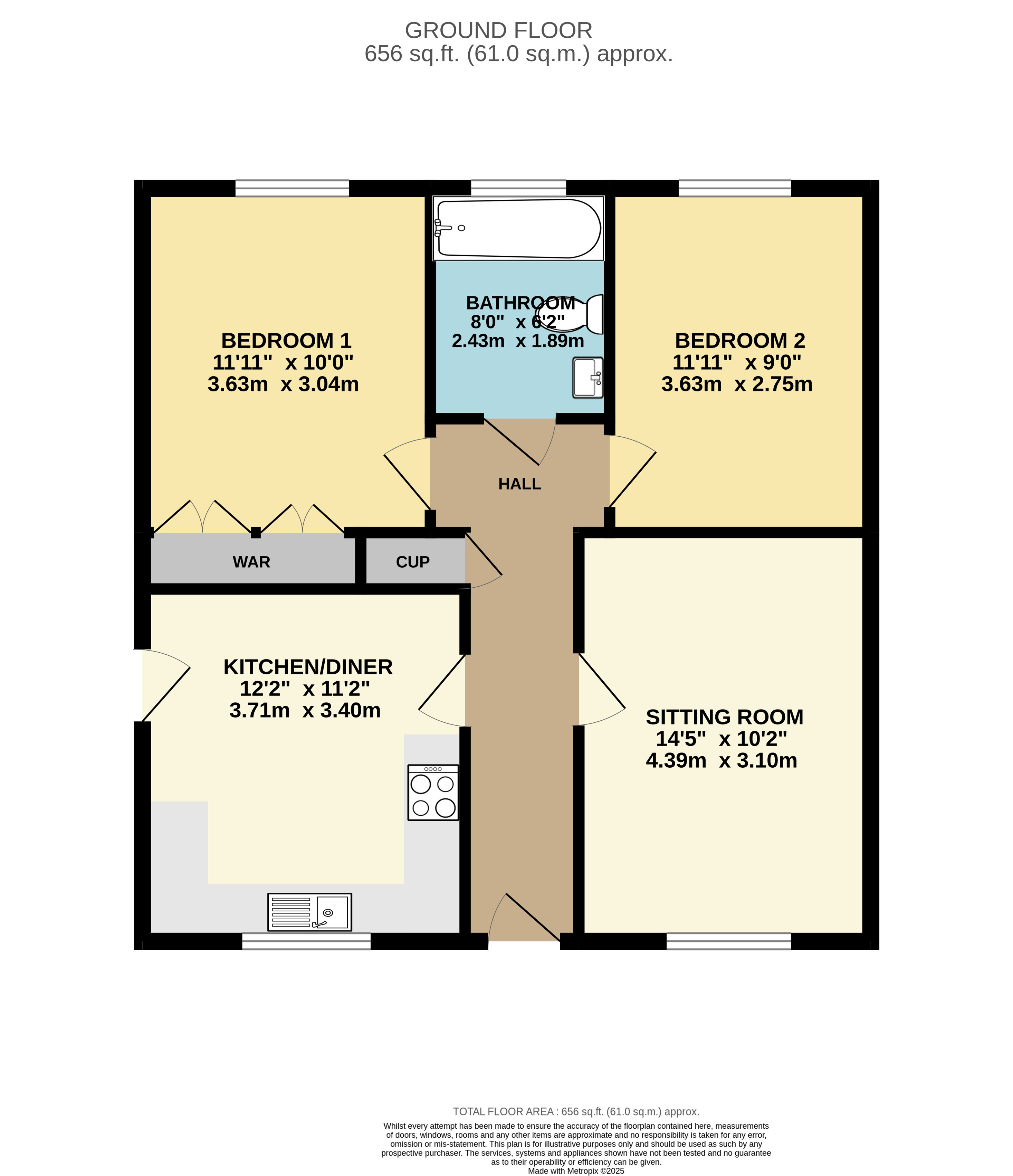 Bedroom 2 11'11" x 9' (3.63m x 2.74m).