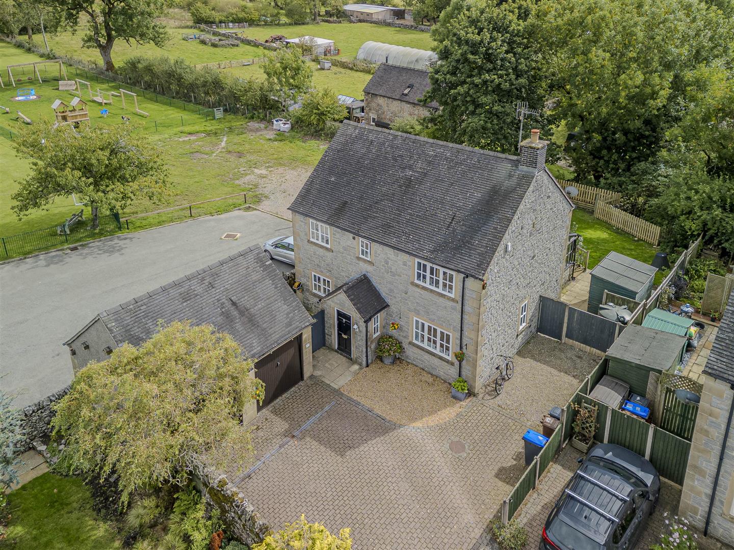 The property boasts a spacious plot featuring a good size, enclosed, rear garden, perfect for relaxation and play. The stone exterior exudes timeless elegance in keeping with the environment, while the detached double garage provides secure parking and ample storage, with the potential for conversion into additional living space, subject to necessary approvals.