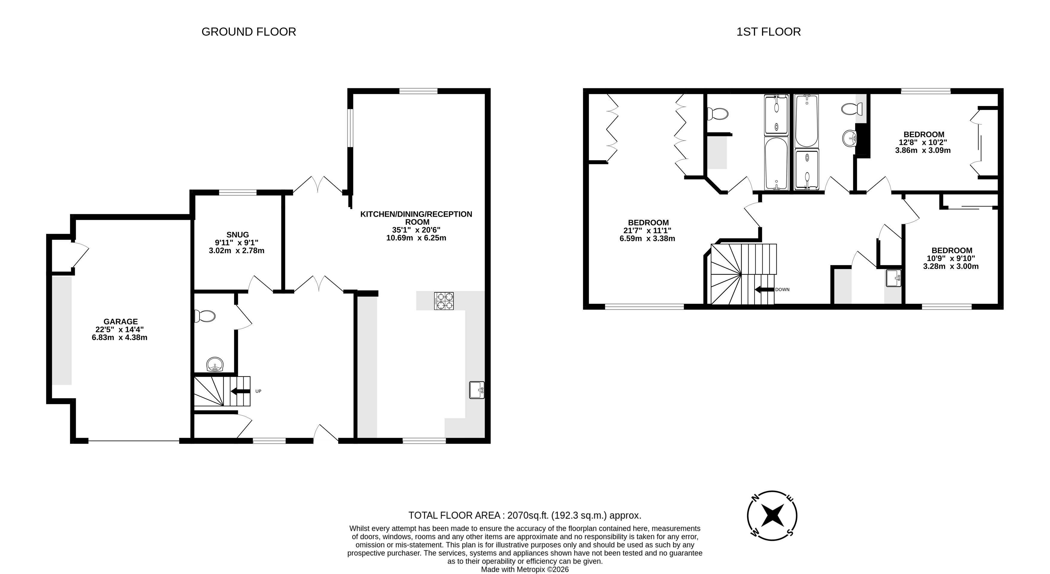 Upstairs, a spacious landing provides access to the principal bedroom, which benefits from a comprehensive range of fitted wardrobes and a stylish en suite bathroom. There are two additional double bedrooms, a family bathroom, and a separate utility room.