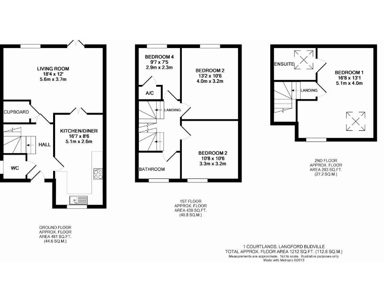 The ground floor features a modern kitchen/dining room with double doors opening into a generous sitting room, creating a light and sociable living space. From here, further double doors lead out to the enclosed walled courtyard garden, providing a seamless flow for indoor-outdoor living. A useful cloakroom and large under-stairs storage cupboard complete this level.