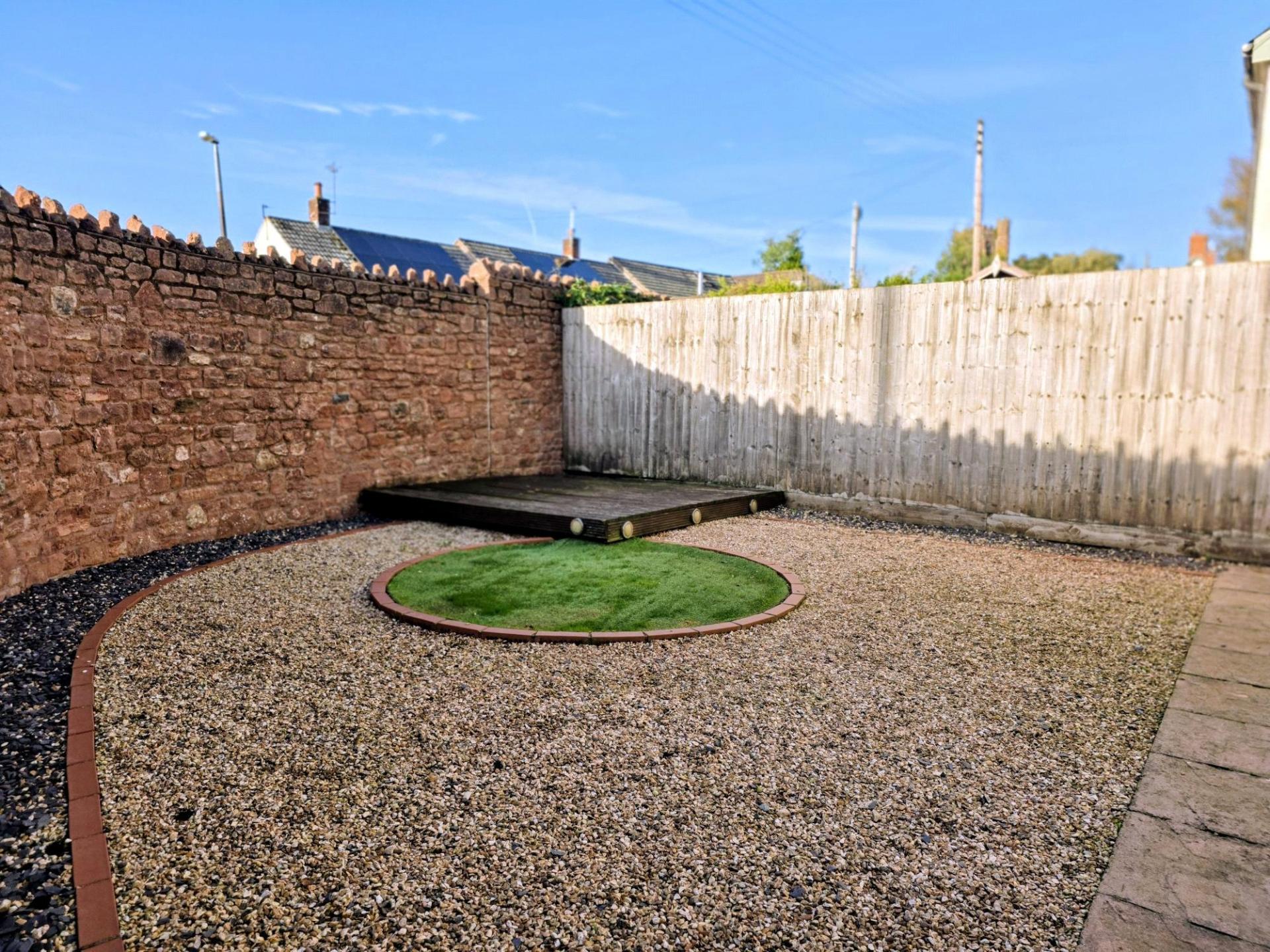 To the front of the house is a double width drive with side gate opening on to the enclosed walled courtyard style garden laid to shingle for ease of maintenance.
