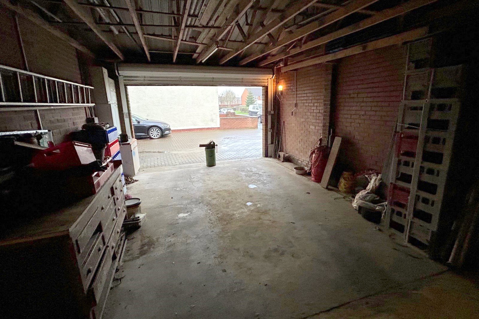 External To the front of the house there is a small town garden and to the side and rear a large block paved area allowing off street parking for multiple vehicles. The warehouse is to the side with a small lawned garden to the rear.