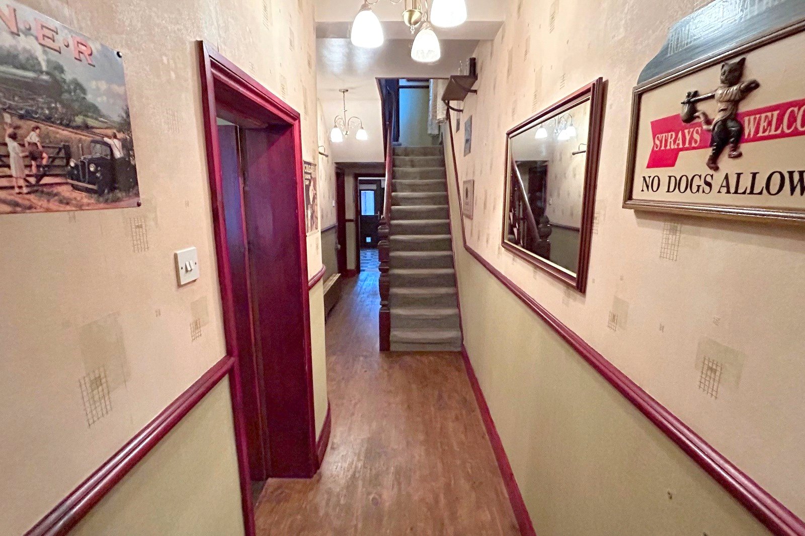 Hallway Doors lead to the lounge, dining room and kitchen. Staircase to the first floor. Radiator.