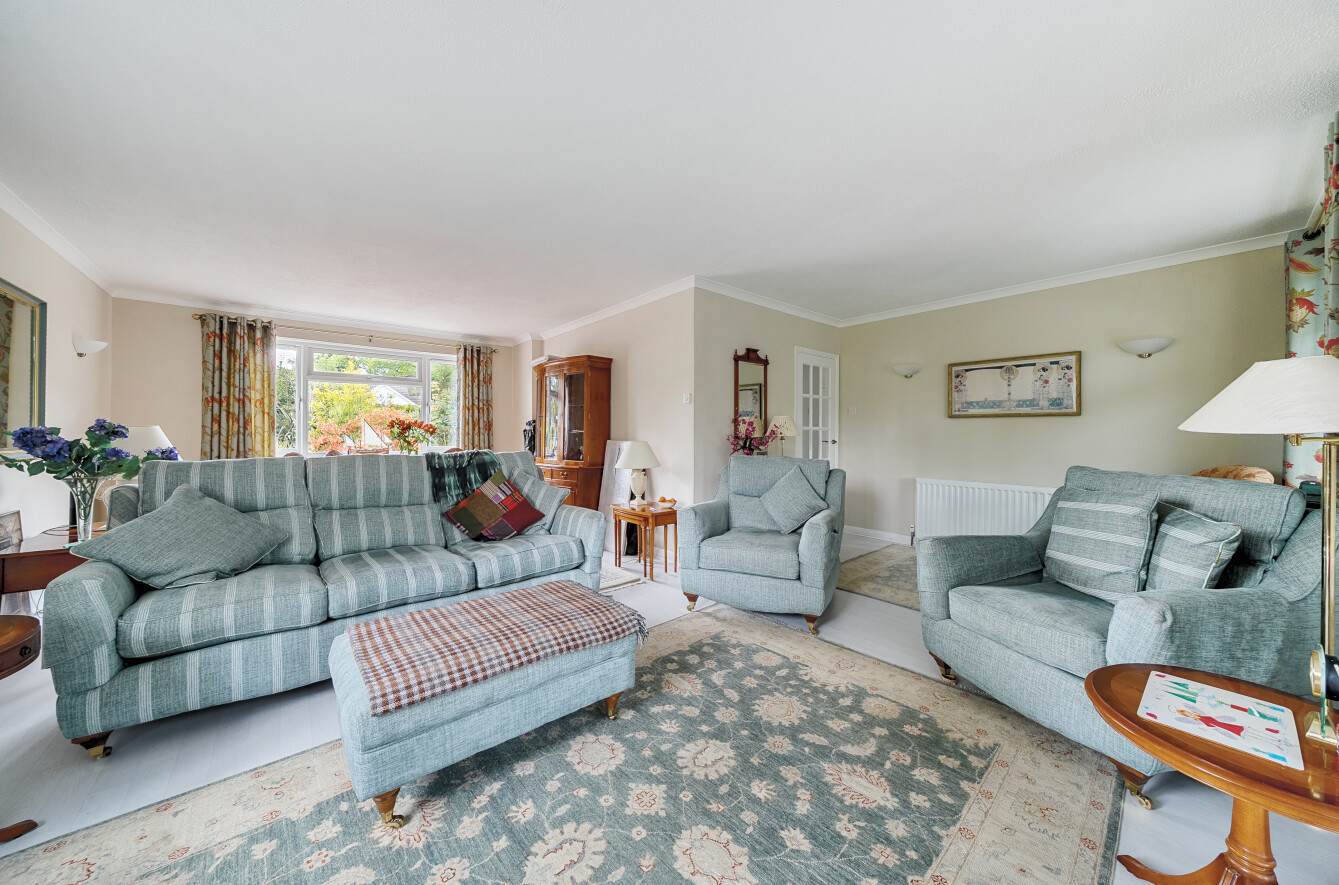The living room features dual aspect windows ensuring an abundance of natural light as well as access into the new addition of the garden room, a bright and spacious room leading into the wrap around gardens.