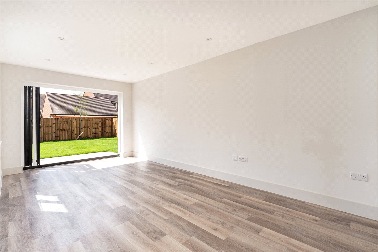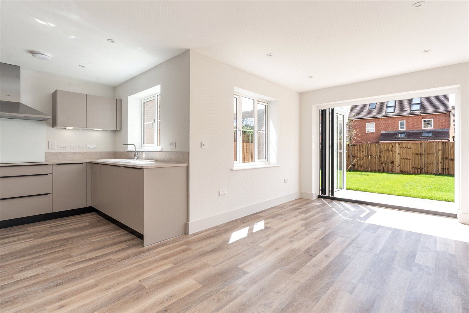 - Contemporary kitchen/family room with integrated appliances and bi-fold doors to the garden