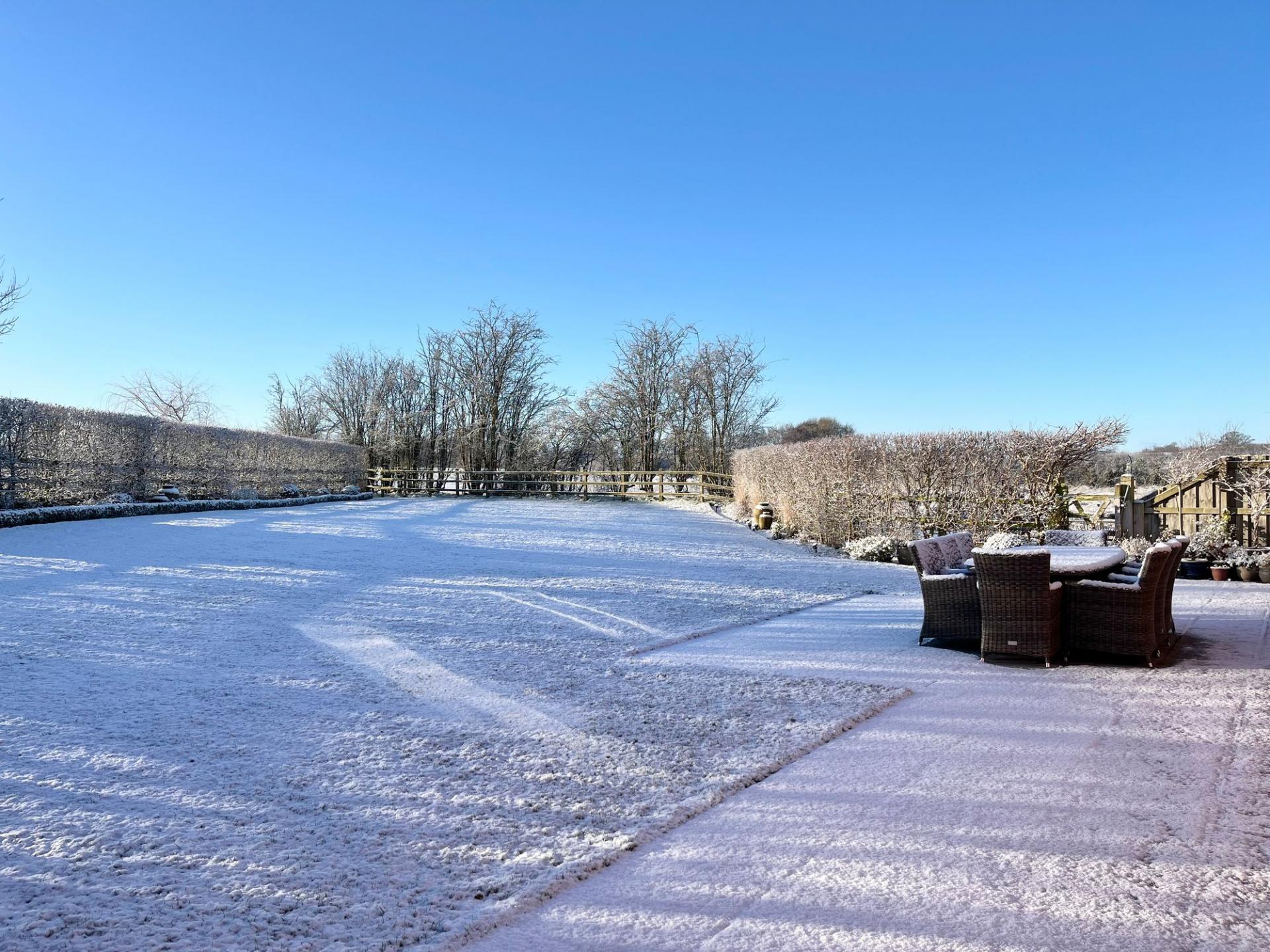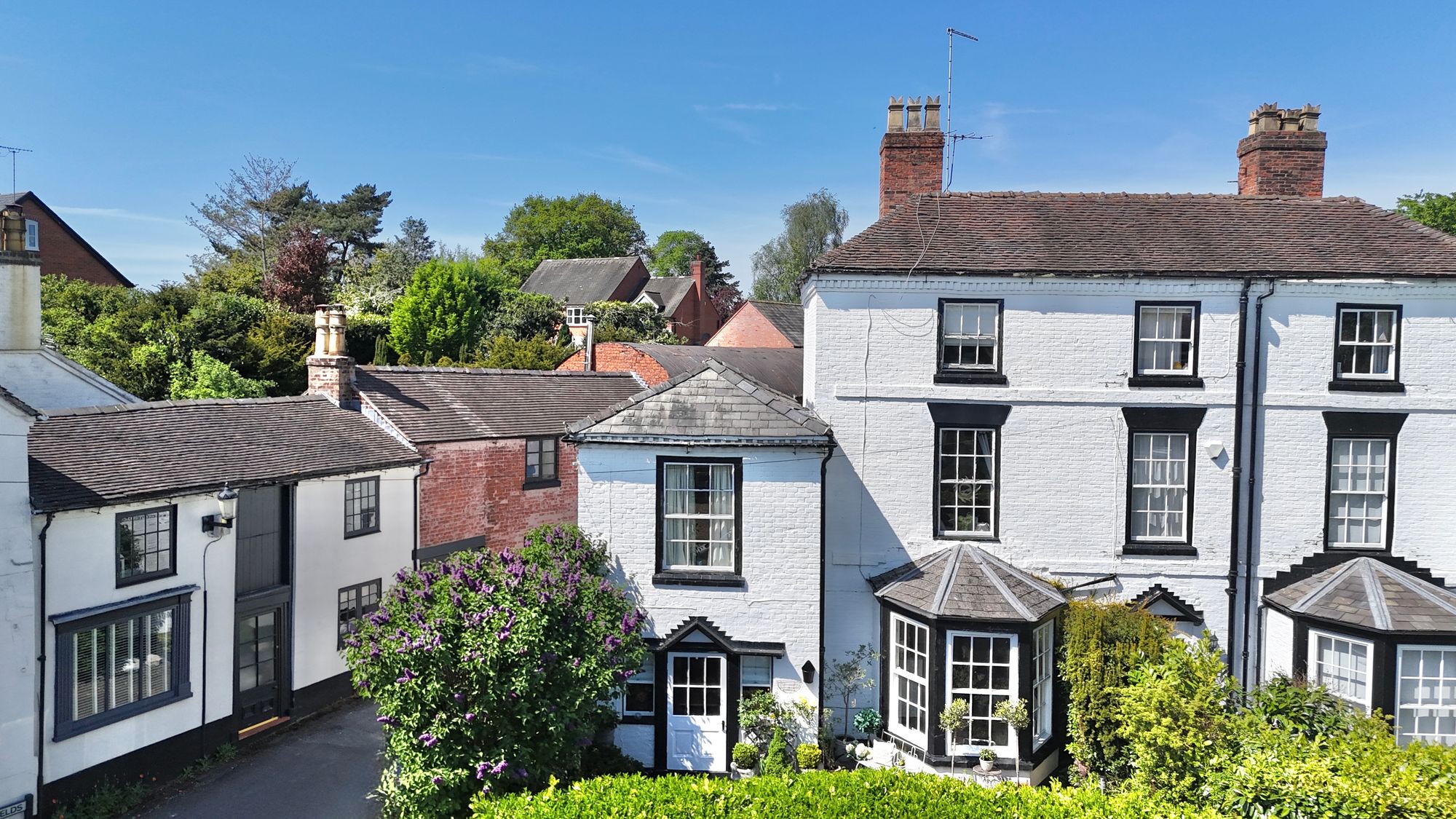 - Large private 400 square meter garden with patio, shed, and private garage with separate visitor parking in a sought-after Burleydam village location.
