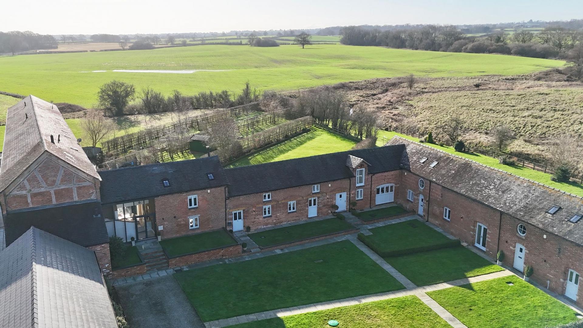 - Characterful barn features including exposed beams and brickwork, blended with contemporary finishes.