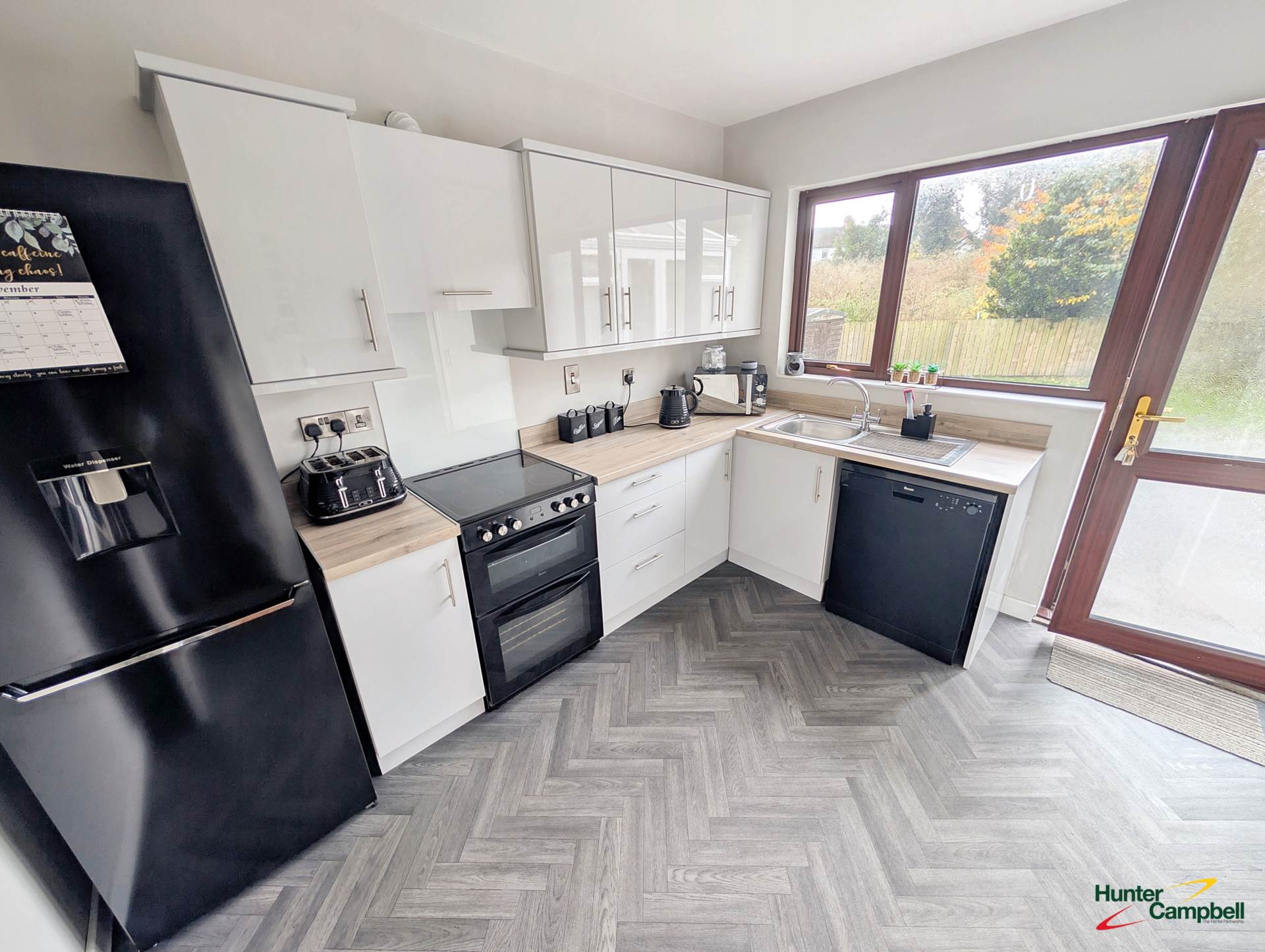 - Recently installed kitchen with a good range of high and low level units in a high gloss finish