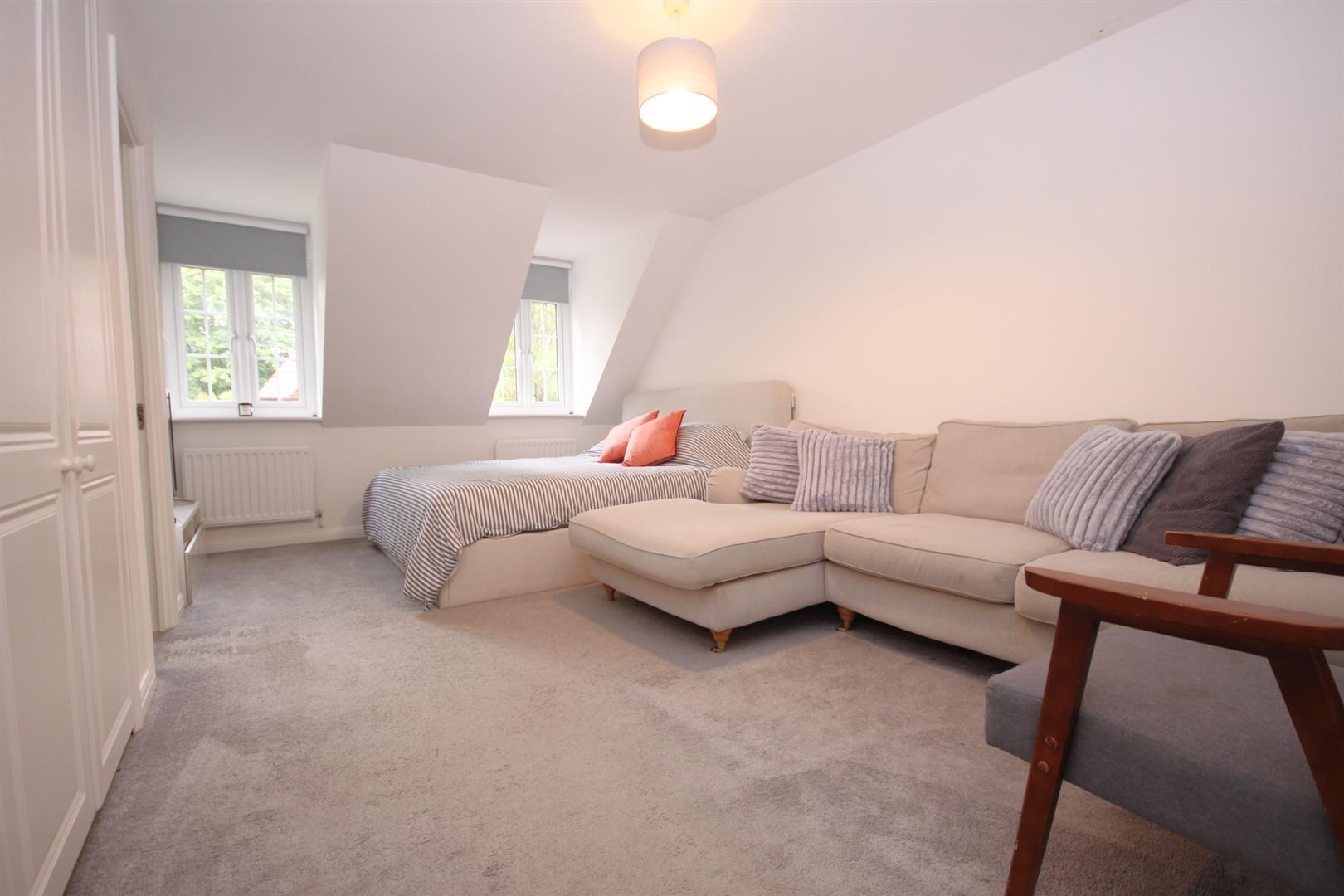 16'10ft Main bedroom enjoying a separate dressing room with an array of built in wardrobes & furniture