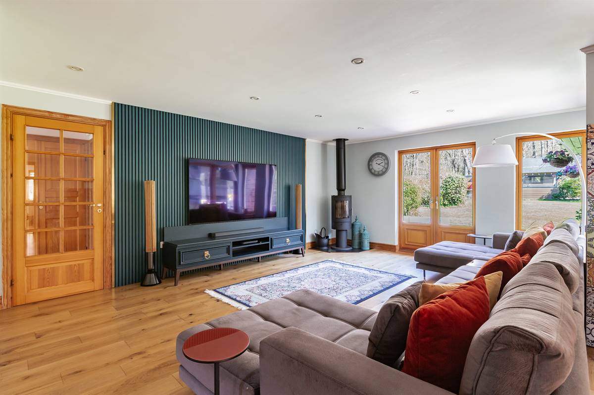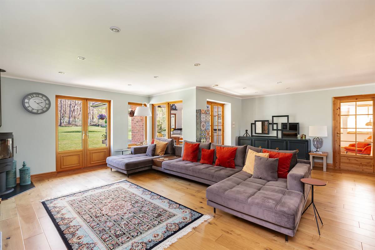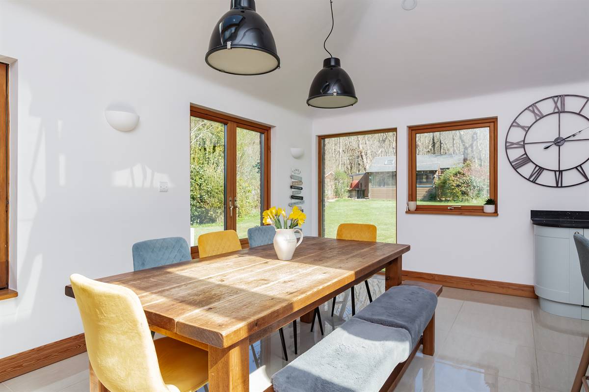 Set in an idyllic woodland setting, this exceptional detached bungalow, built by the renowned Swedish construction company Scandia-Hus, boasts an impressive A-rating for energy efficiency complemented by solar panels.
