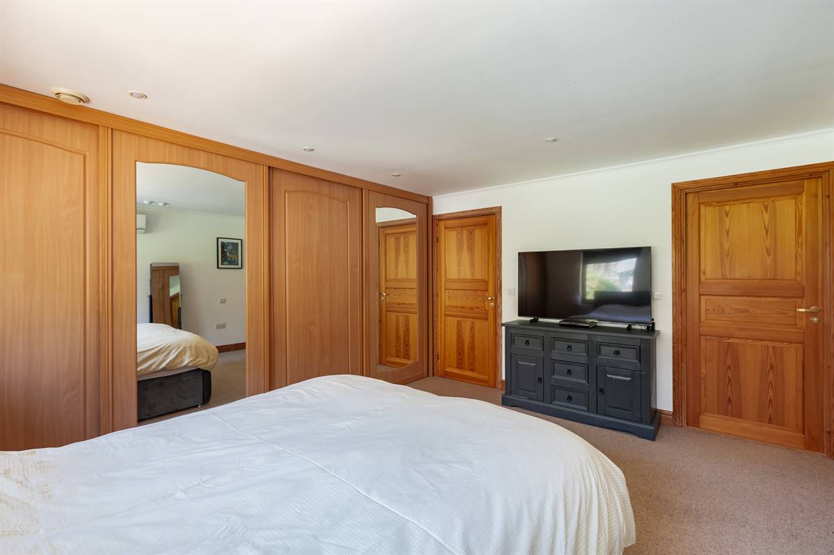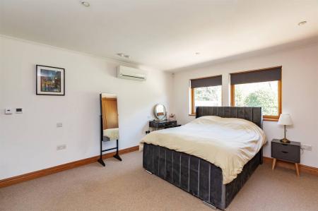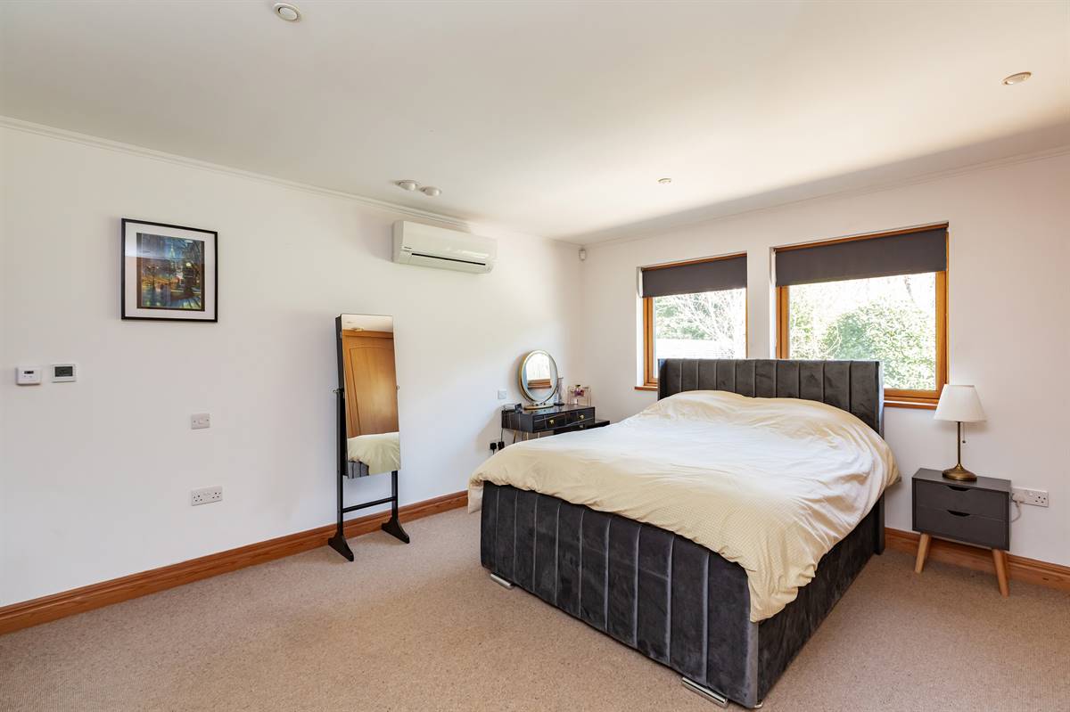 Window to rear overlooking garden. Wall of fitted wardrobes with automatic lighting, hanging and shelving. Underfloor heating. Downlighters. Air conditioning unit. Door to en-suite.