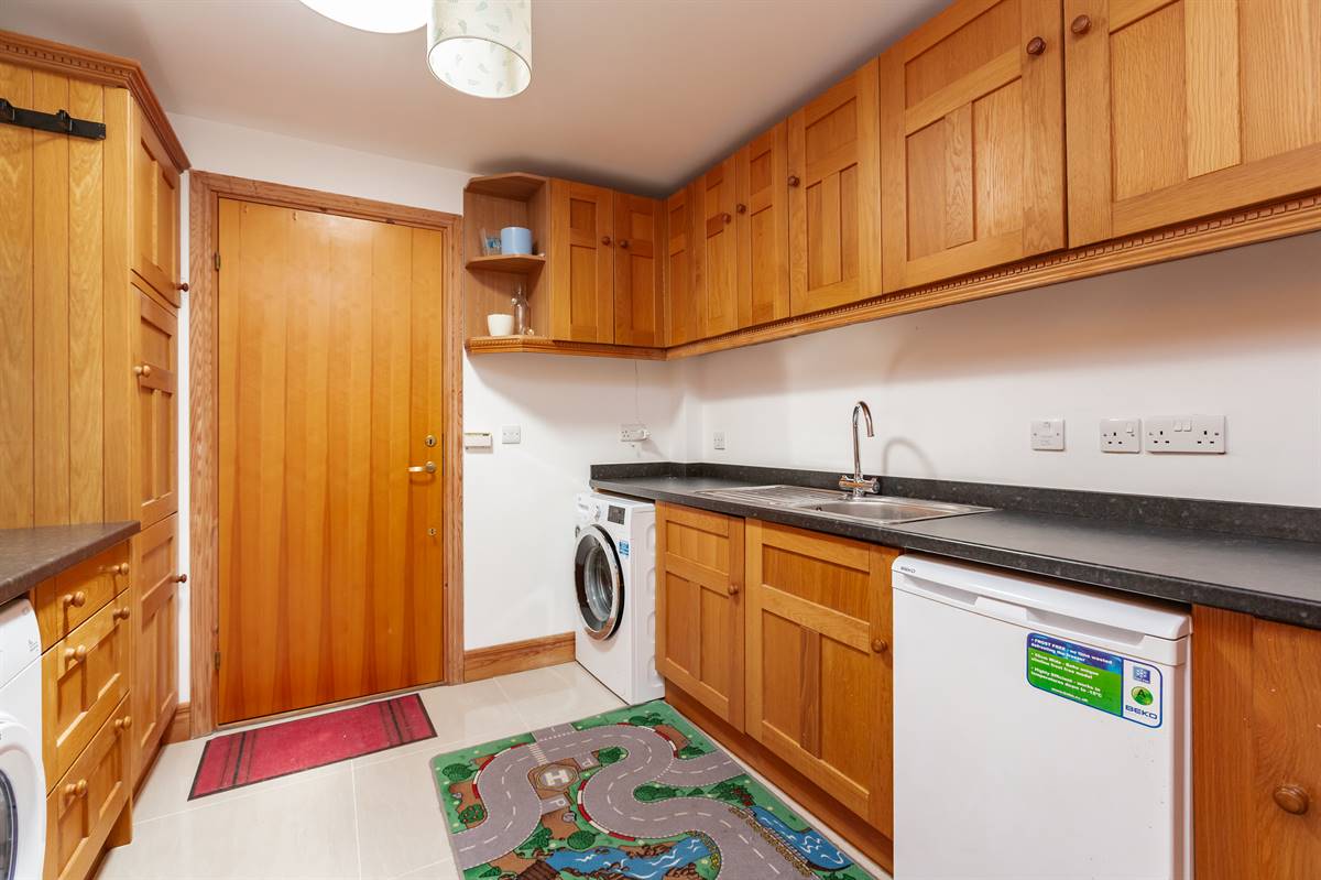 Range of matching wall and base units. Inset single drainer stainless steel sink unit. Work surfaces. Underfloor heating. Sun tunnel. Plumbing for washing machine. Space for tumble dryer. Tiled floor. Personal door to garage.