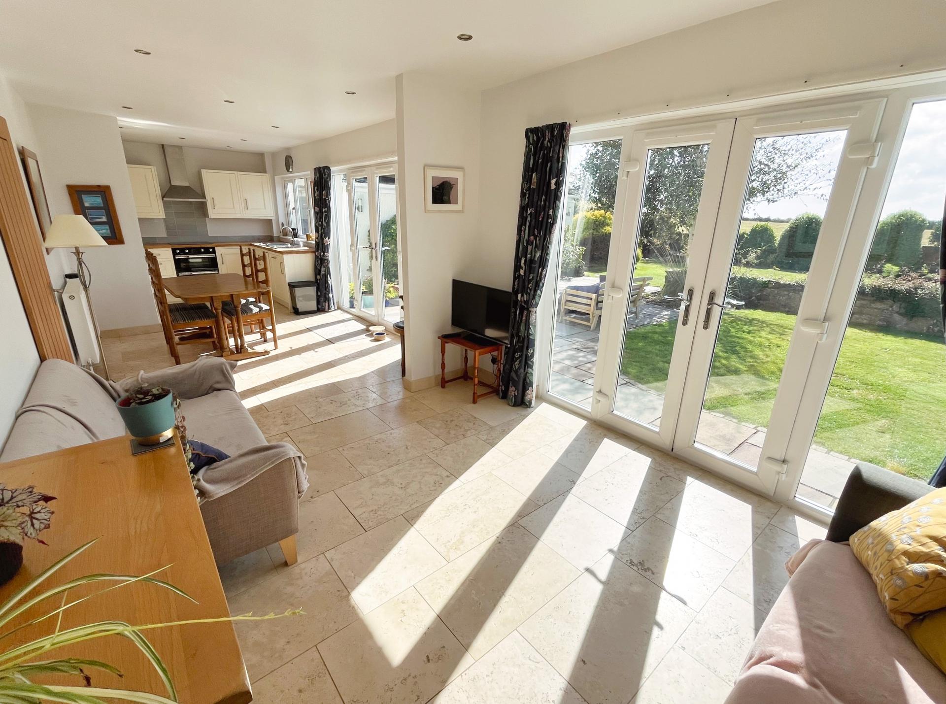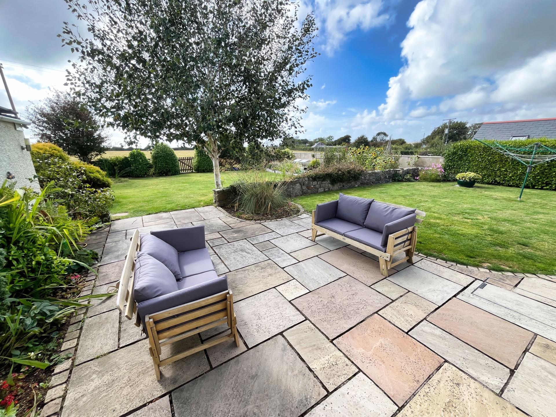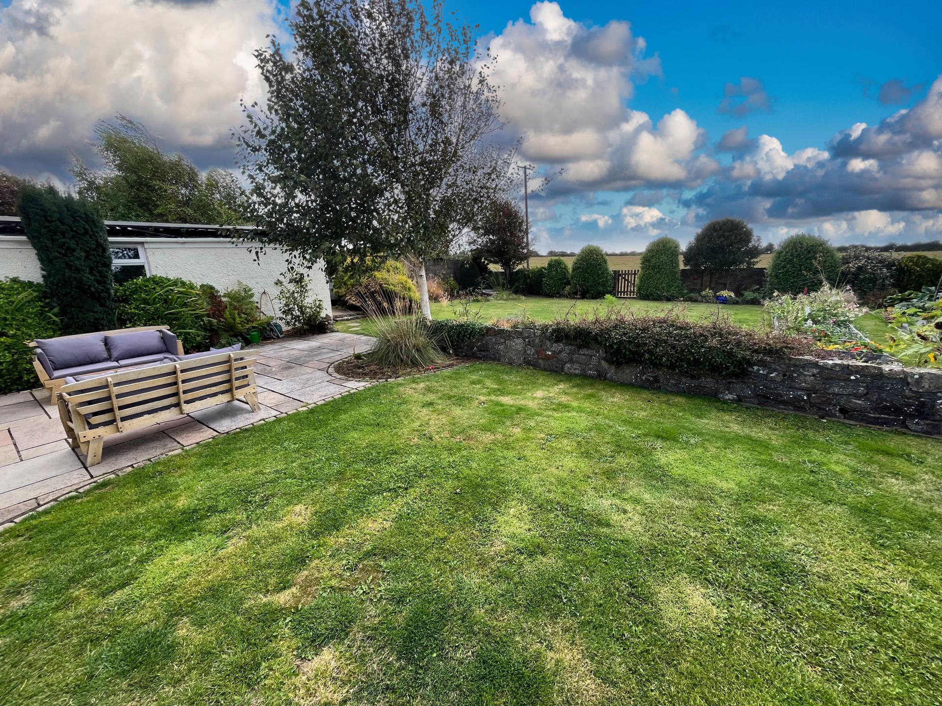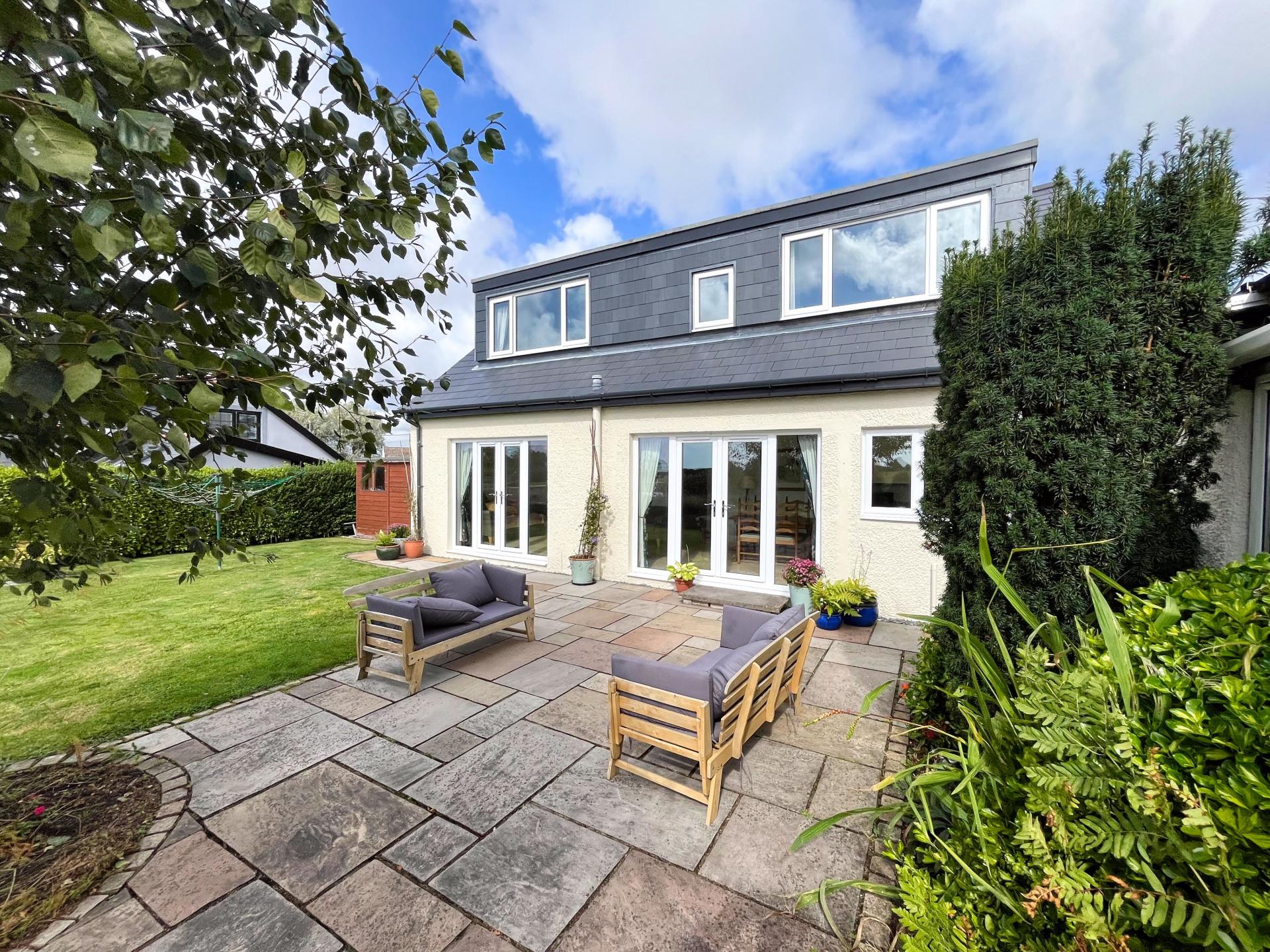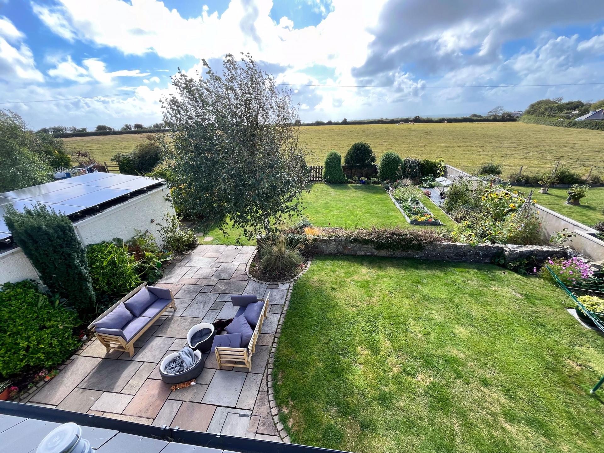 - Front lawn, extensive parking and single garage with solar panels over, utility room, sandstone paved and lawned rear gardens with beautiful views.