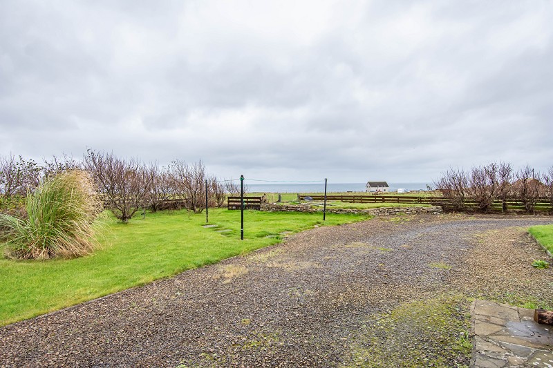 The front garden is low maintenance and has had stone chippings laid. Ranch style fencing surrounds the front boundary and has access to each side of the house and garage which leads to the rear garden. The house is serviced by oil central heating and enjoys superb views over the sea from the side and rear of this character home.