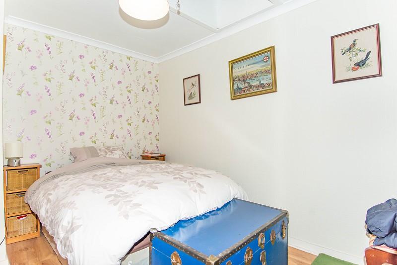 This room has a feature floral wall and benefits from oak laminate flooring. There is wall mounted coving, a skylight and a pendant light fitting. The bedroom also has a central heating radiator, double sockets and two glazed panels which face into the hall.