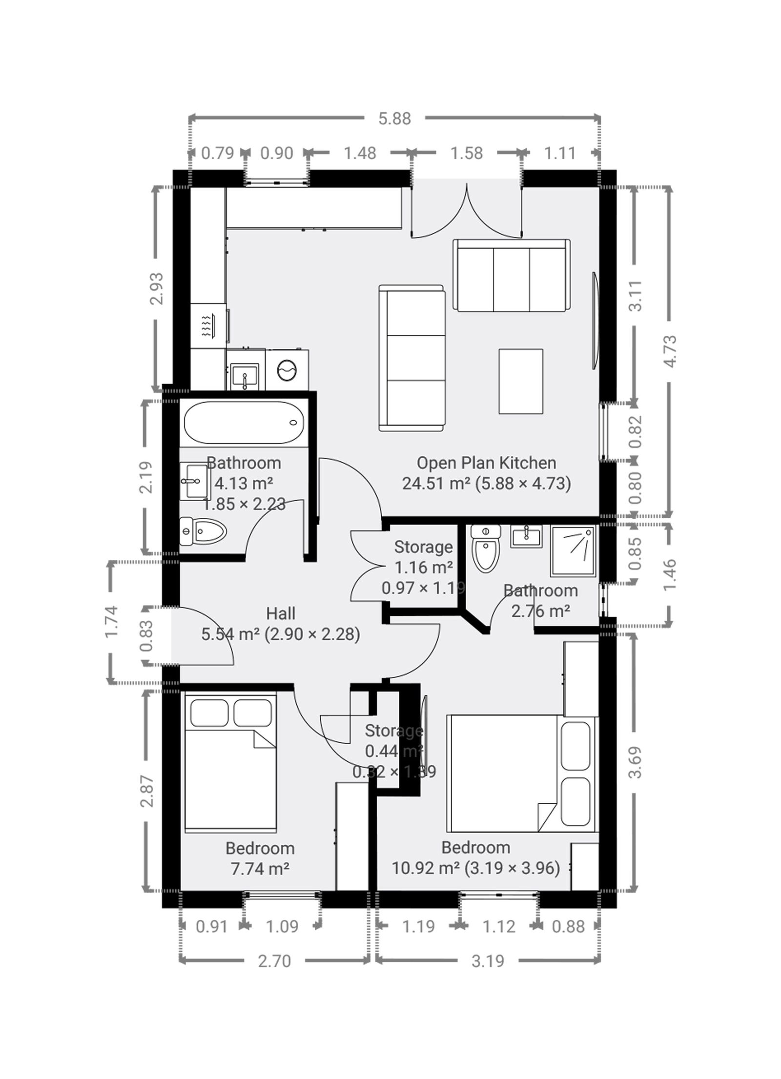 - Two Bedrooms