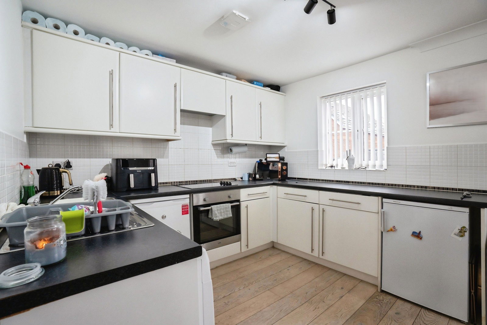 The apartment features a well-proportioned reception room, providing a welcoming and versatile space for relaxation and entertaining. The modern fitted kitchen integrates seamlessly, offering a practical and stylish area for daily living.