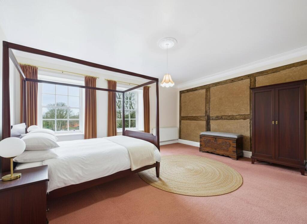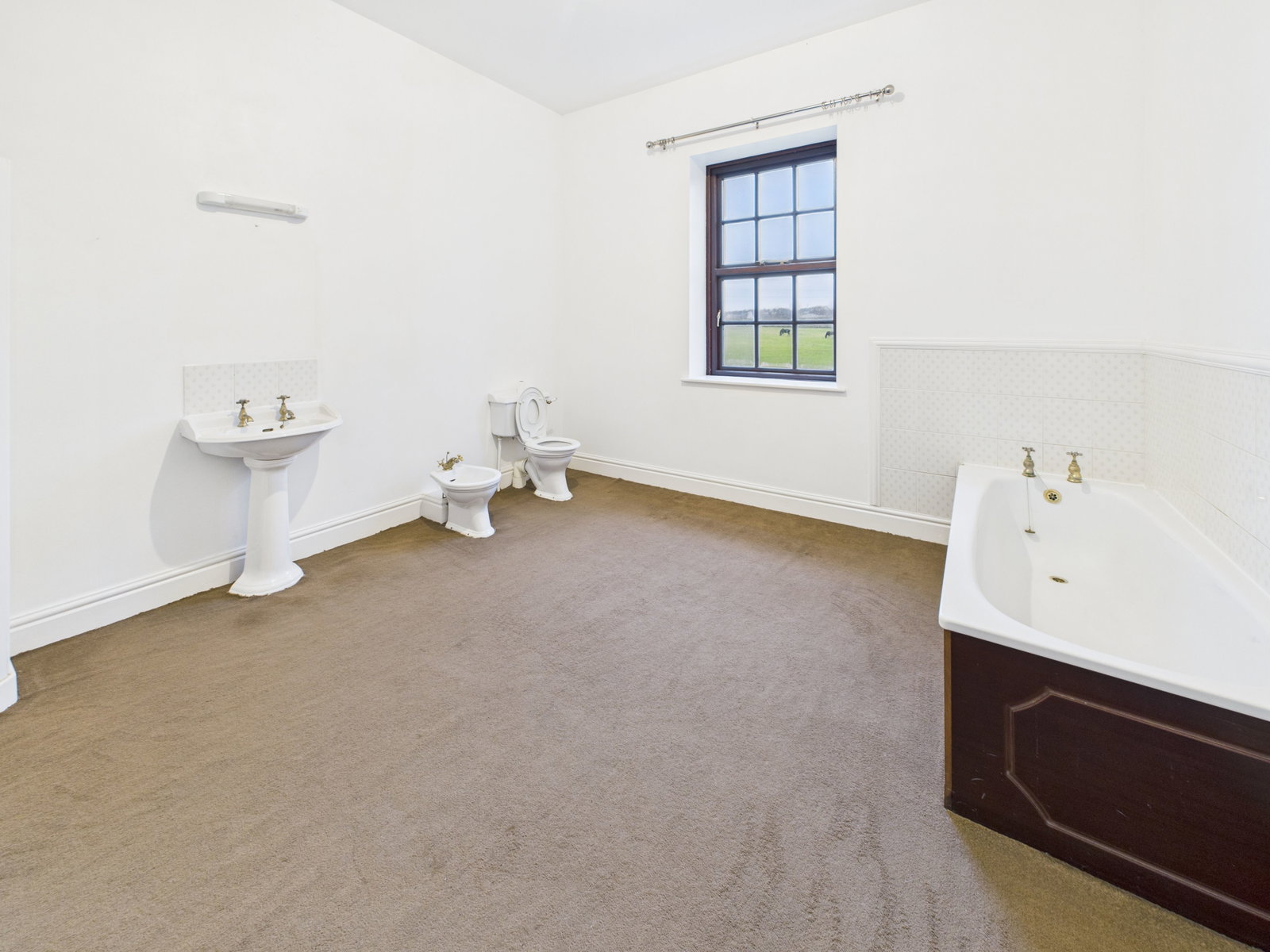 Behind its striking symmetrical façade, the property offers spacious, light-filled interiors featuring high ceilings, refined finishes, and versatile living spaces ideal for family life or grand entertaining. Highlights include a welcoming grand foyer, elegant reception rooms, and a charming farmhouse kitchen complete with a log burner, creating a warm and inviting atmosphere.