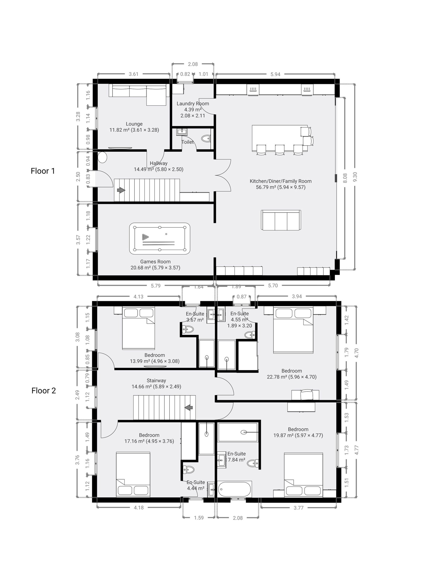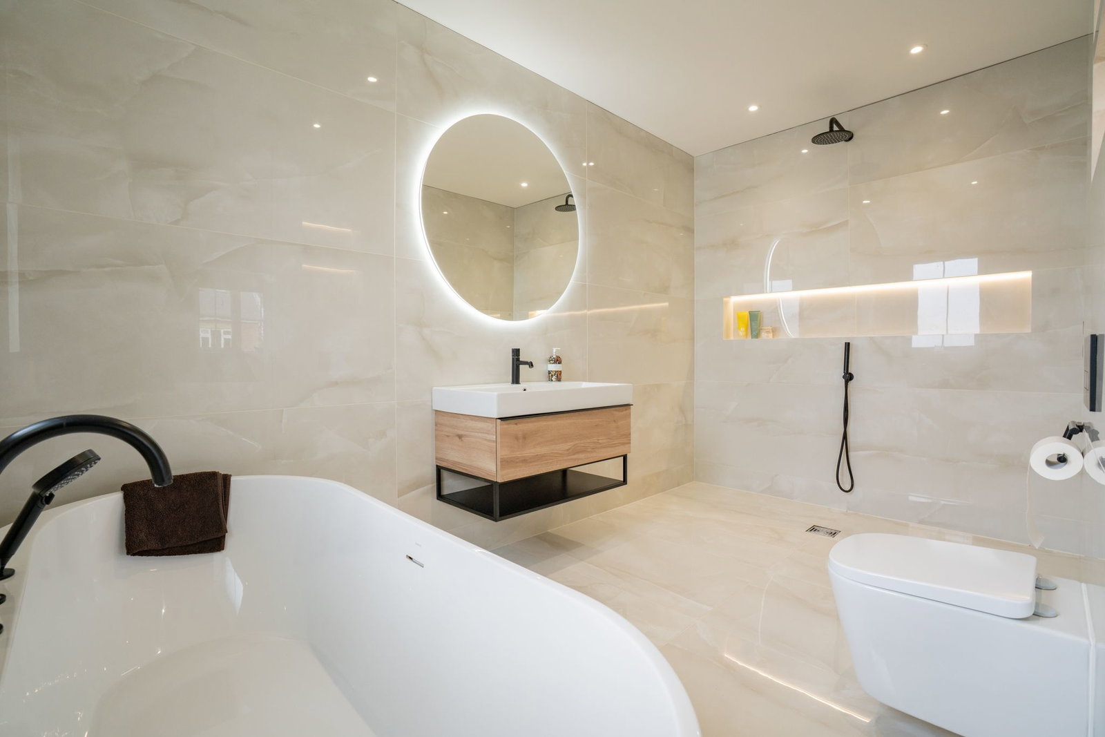 Ascending to the first floor, you will find four generously proportioned double bedrooms, each boasting its own private en-suite bathroom all benefitting from under floor heating. This exceptional layout ensures comfort and privacy for all occupants, making it ideal for families seeking space and convenience.