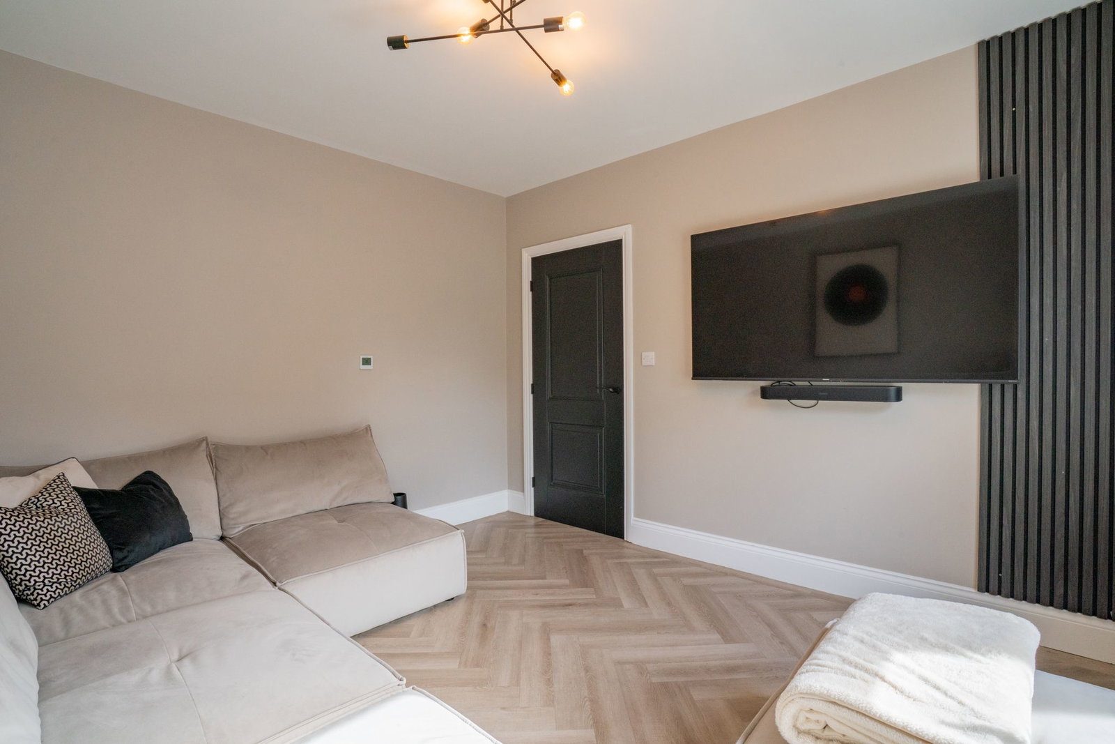 The ground floor is designed for modern living and entertaining, featuring a spectacular open-plan kitchen, dining, and family room that forms the heart of the home. This expansive space is complemented by three versatile reception rooms, providing ample space for relaxation, work, or formal gatherings. A well-appointed ground floor bathroom adds to the convenience.