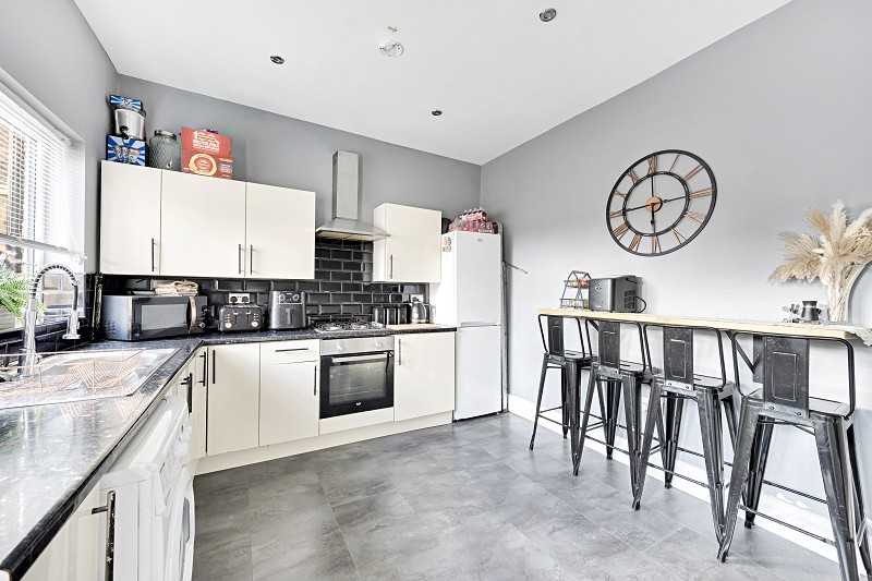 Step inside to a welcoming, generously sized lounge that flows seamlessly into the modern fitted kitchen at the rear, complete with a breakfast bar and French doors opening to the rear garden perfect for relaxed family living and entertaining.