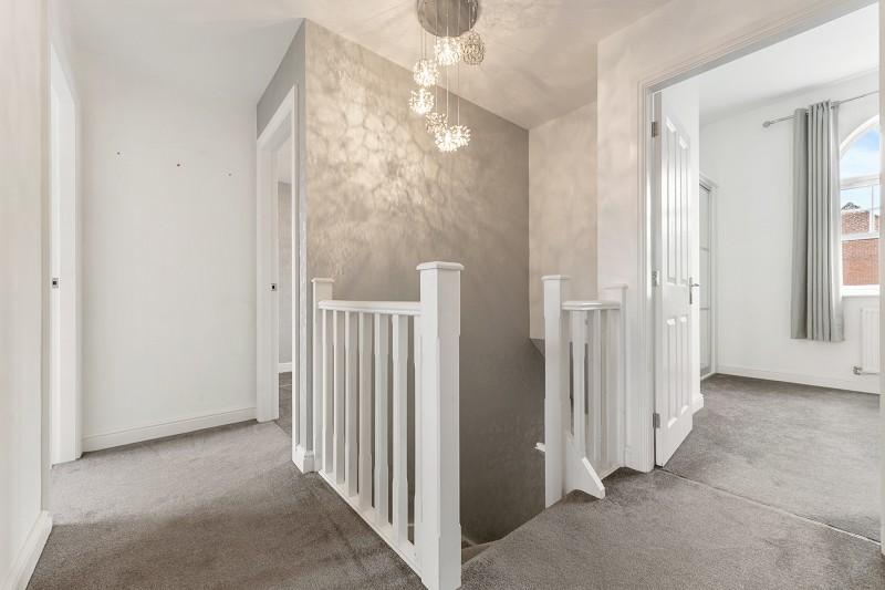 Upstairs, the spacious landing provides access to four generous bedrooms. The master suite is a true retreat, featuring a stunning arch window, built-in wardrobes, and an en-suite bathroom. The remaining bedrooms are well-sized, complemented by a contemporary family bathroom and a boarded loft for additional storage.