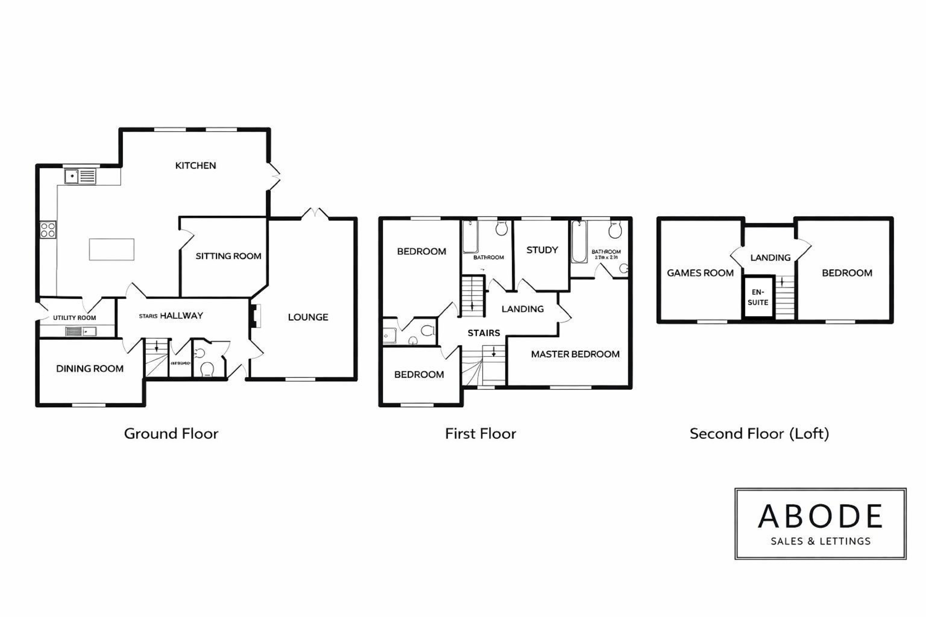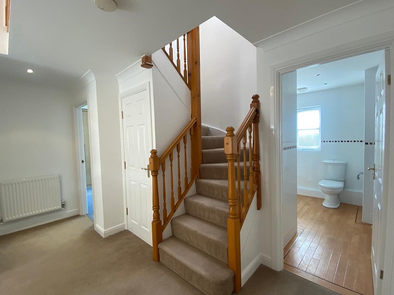 The first floor continues to impress. The luxurious master bedroom suite enjoys generous proportions and benefits from its own private en-suite shower room. Two further substantial double bedrooms are served by a modern family bathroom, while a dedicated study provides an ideal work-from-home solution. The layout ensures privacy and comfort, with a central landing connecting each room seamlessly.