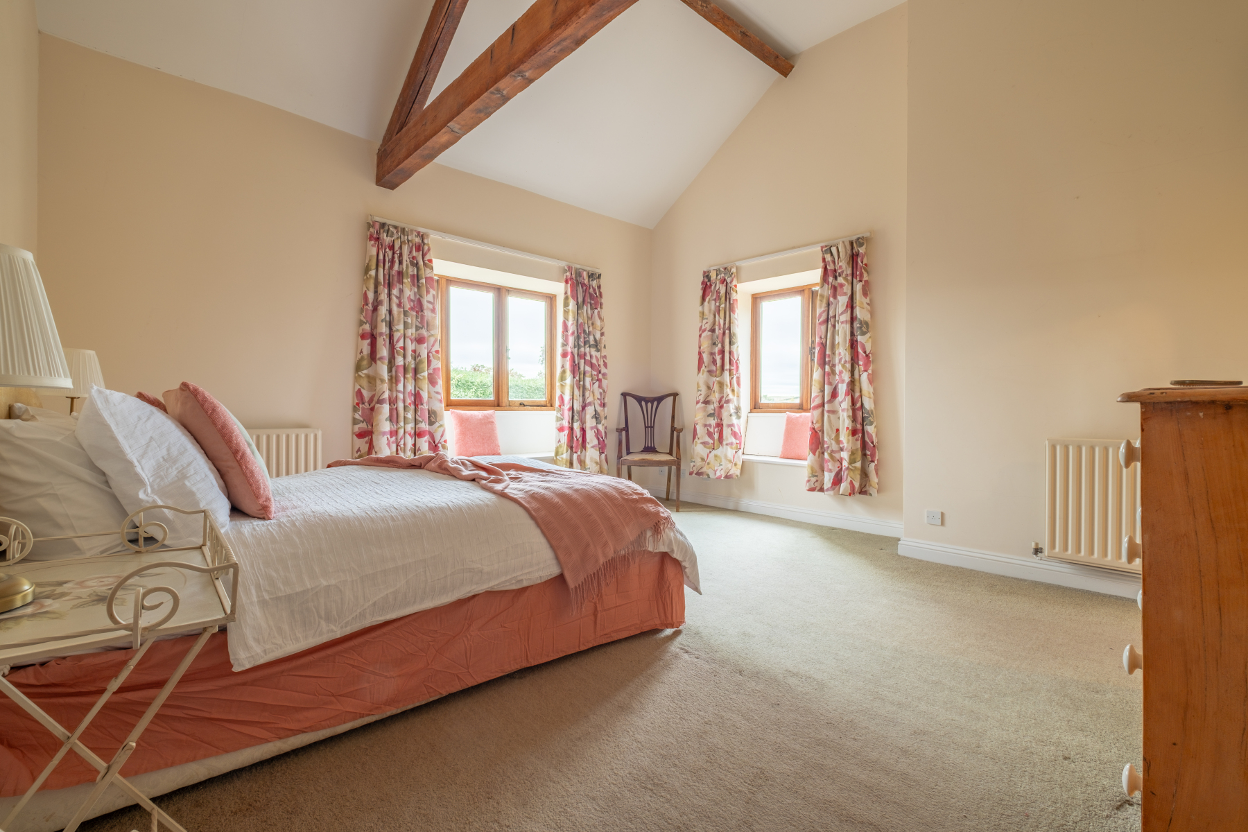 Upstairs, the PRINCIPAL BEDROOM boasts its own DRESSING ROOM and EN SUITE, with scope to create an elegant and private main suite. The remaining BEDROOMS are all comfortable doubles, each with open rural views that give the upper floor a calm, airy feel. The FAMILY BATHROOM completes the accommodation and provides generous space for updating in line with the rest of the house. The rooms throughout are well proportioned and naturally light, combining a sense of scale with the comfort of a traditional farmhouse. It is a house that can be adapted and refined to suit many ways of living, while retaining its strong architectural character.