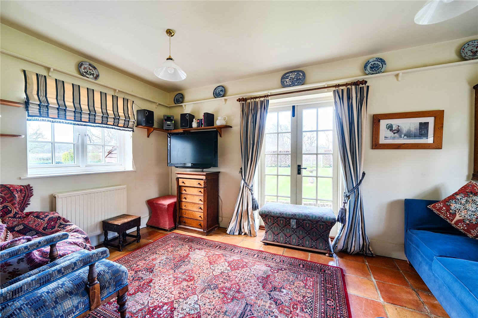 Snug Triple aspect with double doors to garden. Tiled floor.
