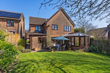This is a magnificent, detached family home in a particularly attractive position with a south-west facing garden. Set in the corner of a small enclave of only four houses in the lower part of Badger Farm, it is a quiet and private location. The property opens into the entrance hall with downstairs cloakroom and access into the well-proportioned sitting room. The dining room leads to the wonderful rear conservatory. The kitchen has been re-fitted with a range of contemporary units and enjoys a large built-in larder. There is a study/family room which is a really versatile space giving access to the rear garden. The first floor has a principal bedroom with ensuite shower room, three further bedrooms and a family bathroom. Externally the property has driveway parking to the front for up to three cars and access to the integrated single garage. The rear garden has been beautifully landscaped with a paved patio terrace immediately behind the house that leads onto a generous, square lawned area, enveloped by well-stocked flower and shrub borders.