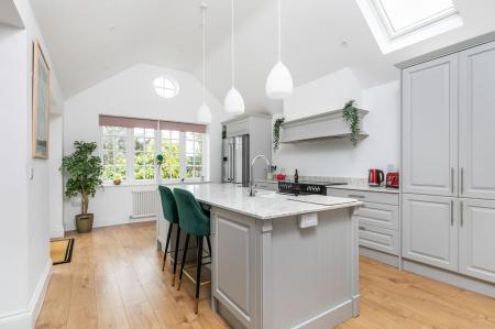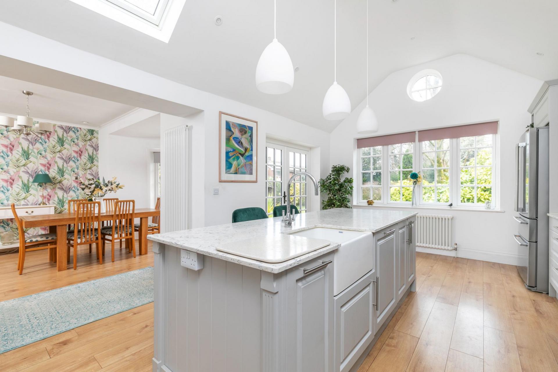 This attractive period cottage provides excellent kerb appeal behind colour washed elevations, under a steep clay tiled roof with inset casement windows and is set back from a gravelled driveway providing parking for several vehicles. The current owners have undertaken a comprehensive programme of upgrading and extension, and the property is beautifully presented. The principal reception spaces all provide a rear aspect overlooking the delightful gardens. The heart of the house is undoubtedly the kitchen/breakfast room, which was an extension and has a double aspect with a window and French doors that open onto the terrace. There are also two roof lights which make this space beautifully light, the kitchen has been fitted with a range of light grey base units with several taller units, as well as a fitted range cooker and an American style fridge/freezer. A centralised island unit has a butler sink and slimline quartz worktops above, with a breakfast counter to one side, although there is also space for a table. The dining room is open plan to the kitchen and there is a separate utility room. The sitting room has a bay that matches the dining room, whilst a family room could equally be used as a fourth bedroom, as there is an adjacent shower room.