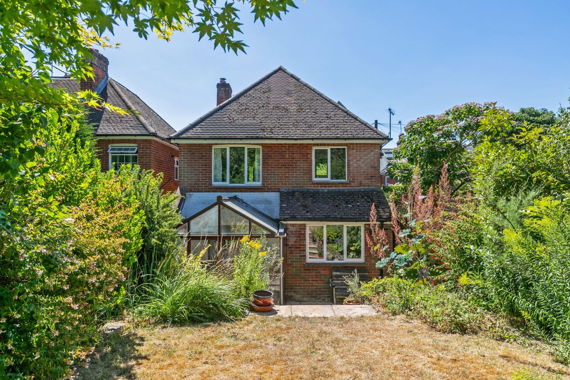 This attractive detached house has been extended with a conservatory and a loft conversion, and although the property is a very comfortable home, buyers may now wish to push the ground floor out to create a ‘live in’ style kitchen/sitting/dining room which would open into the long rear garden, backing onto the Peter Symonds playing fields.